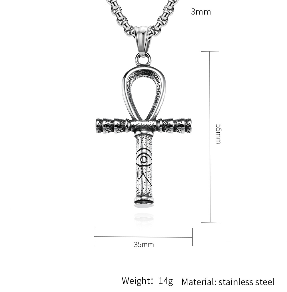 Wear this stainless steel Egyptian Ankh cross necklace with Eye of Horus detail, crafted in balanced proportions and vintage texture for confident everyday styling.