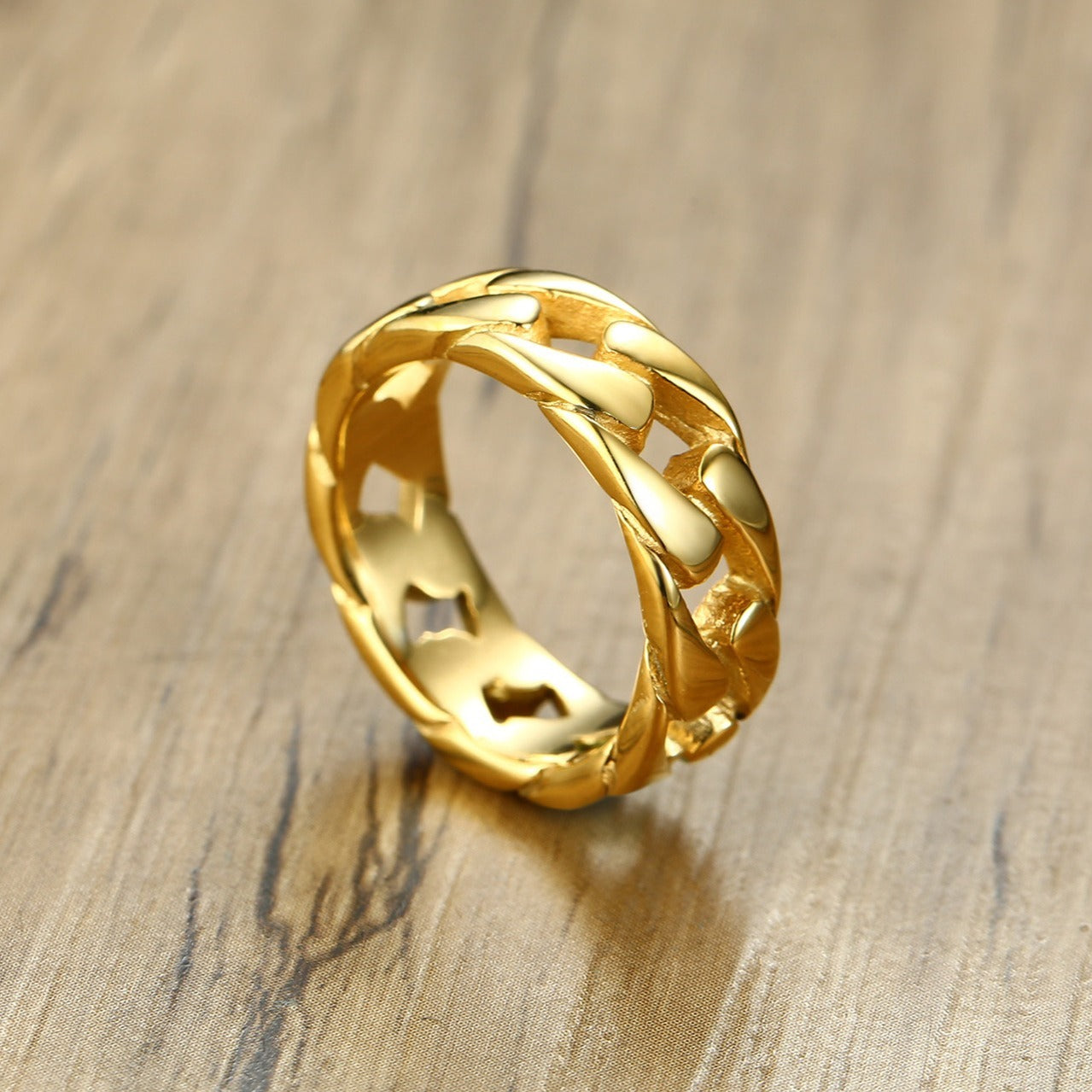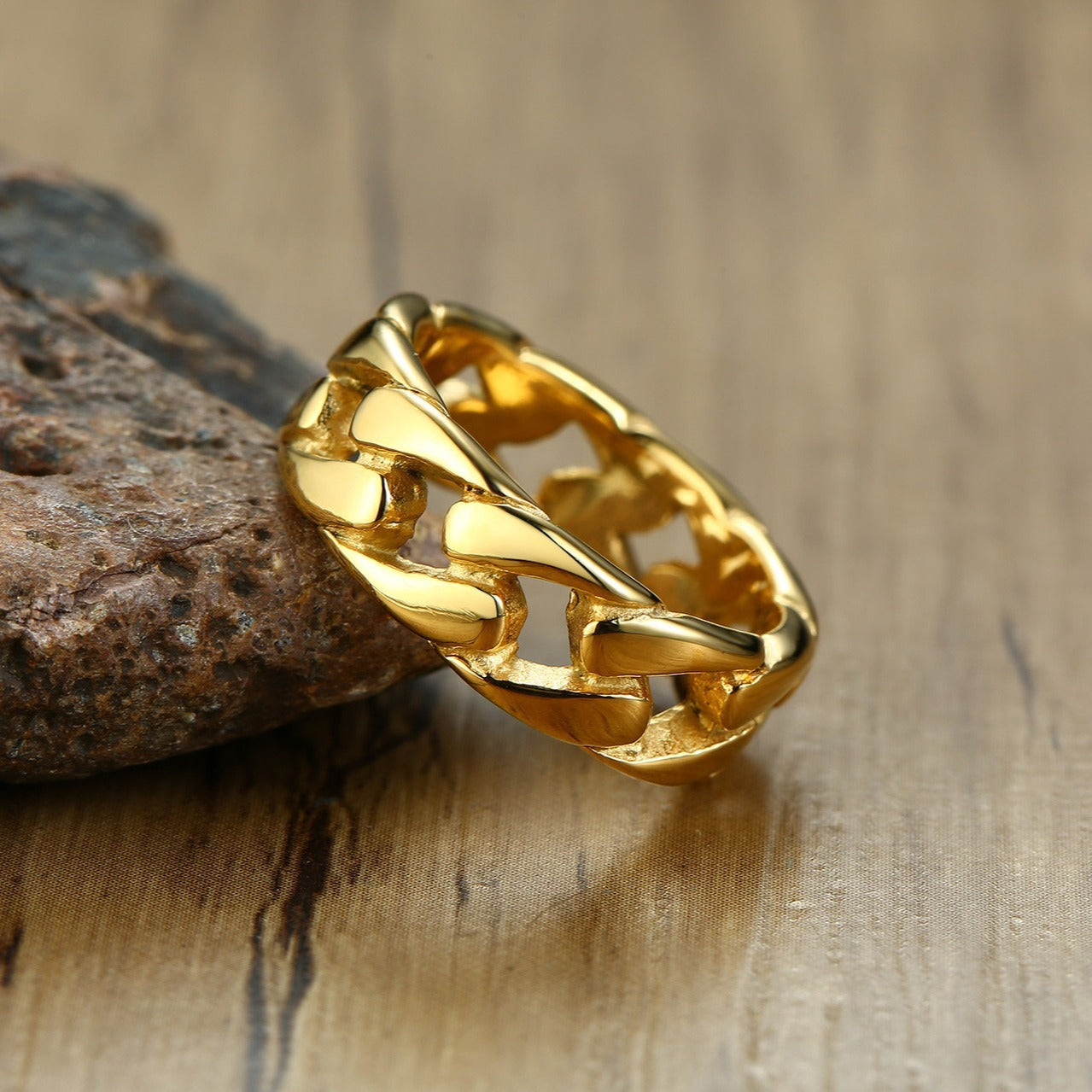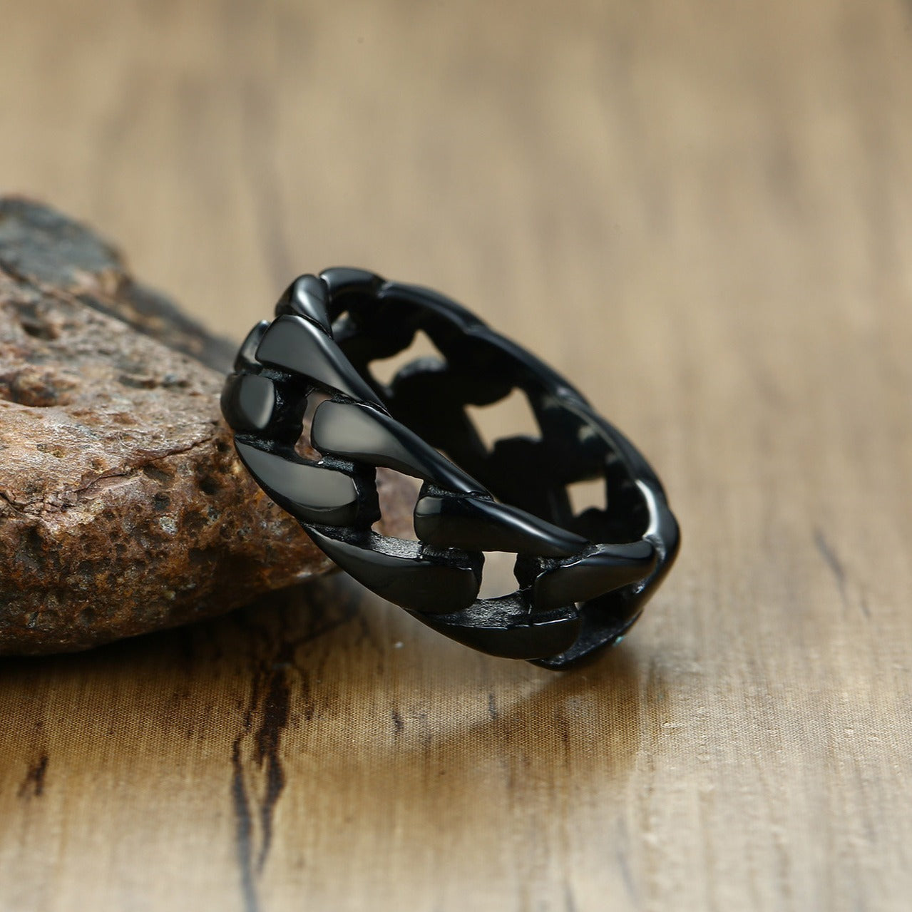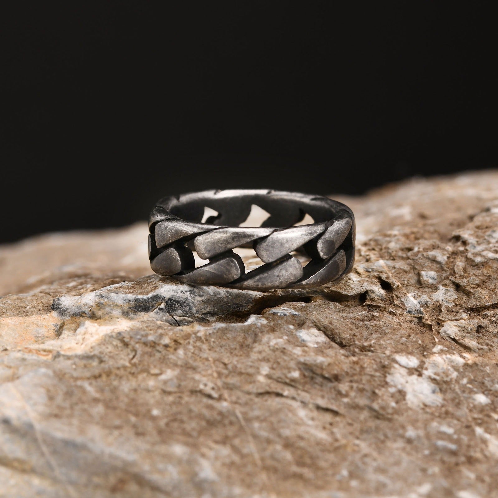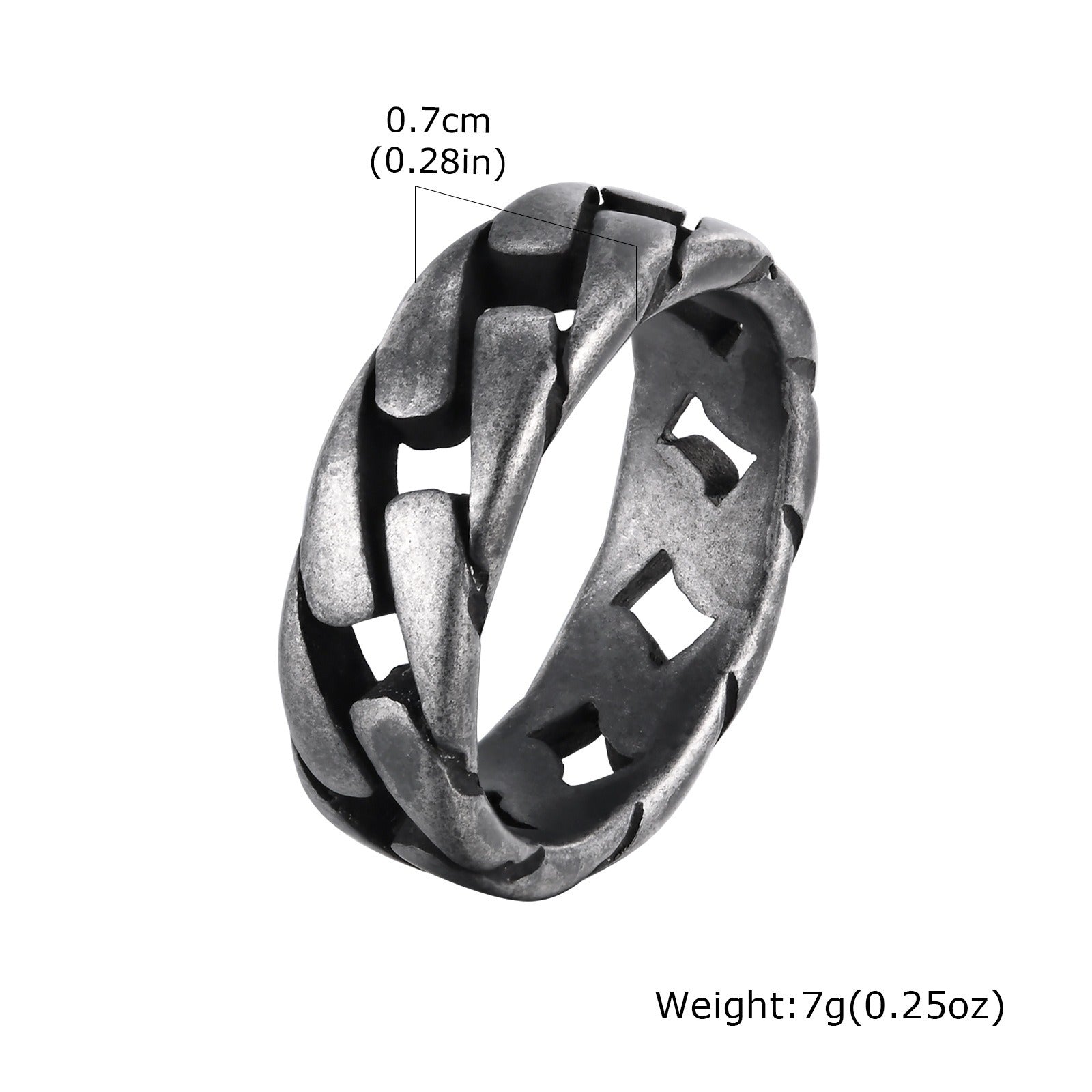 Kemstone Men’s Cuban Chain Titanium Steel Ring – Vintage Biker Link Band R-495