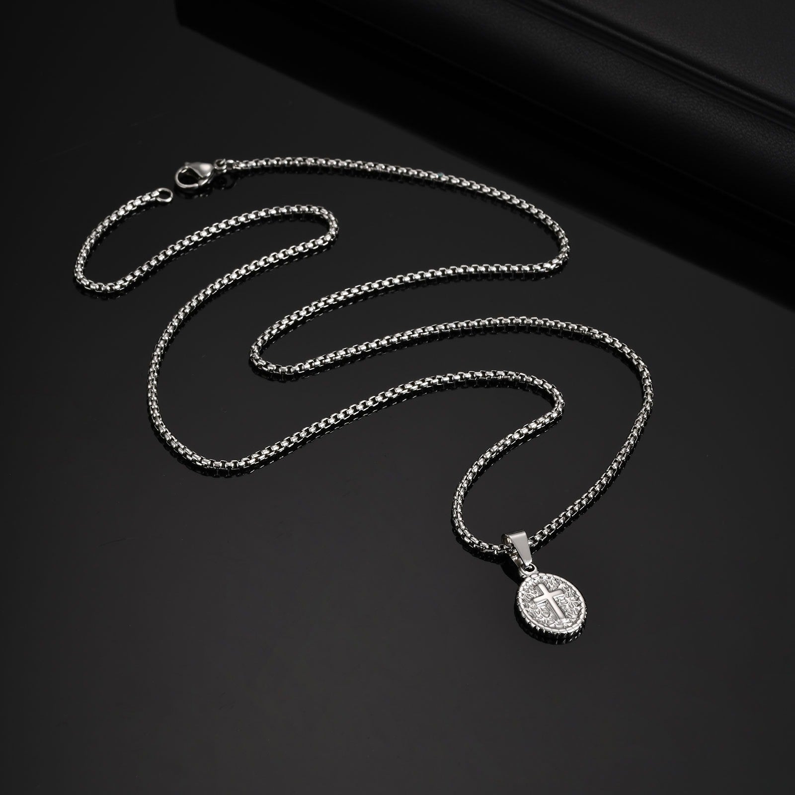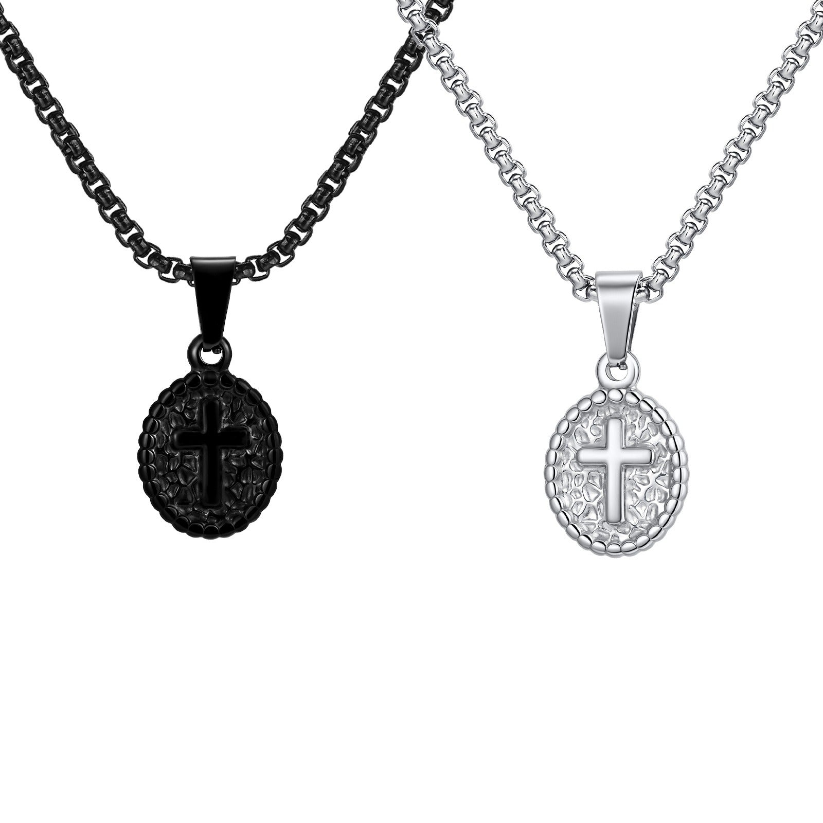 Elevate your style with the Kemstone cross oval pendant necklace — crafted in stainless steel with silver or black finishes, blending faith, strength, and versatility.
