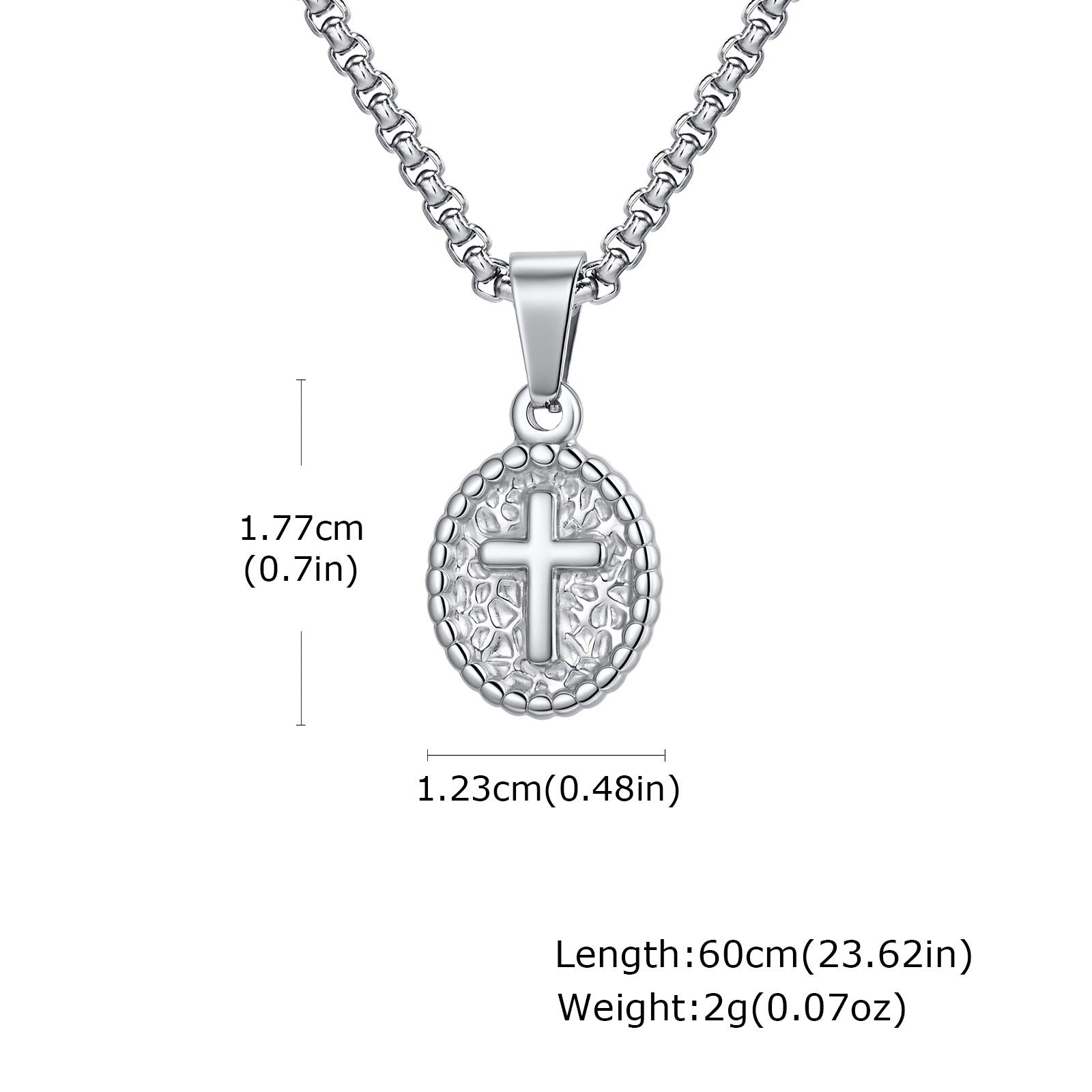 Timeless oval pendant engraved with a cross, symbolizing resilience, faith, and inner strength.