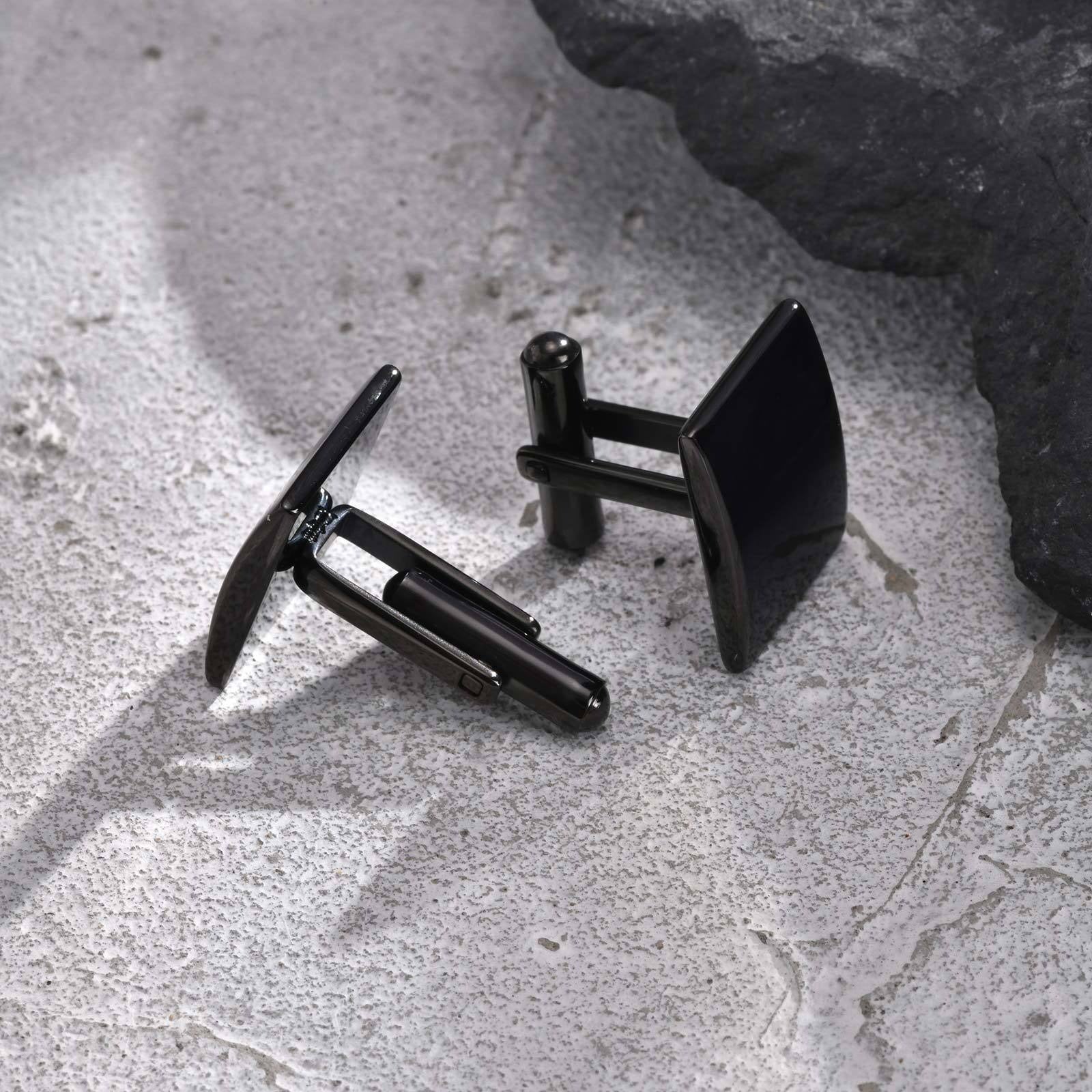 Refine your formal style with Kemstone stainless steel cufflinks — curved square design in silver, gold, or black for a timeless, polished look.
