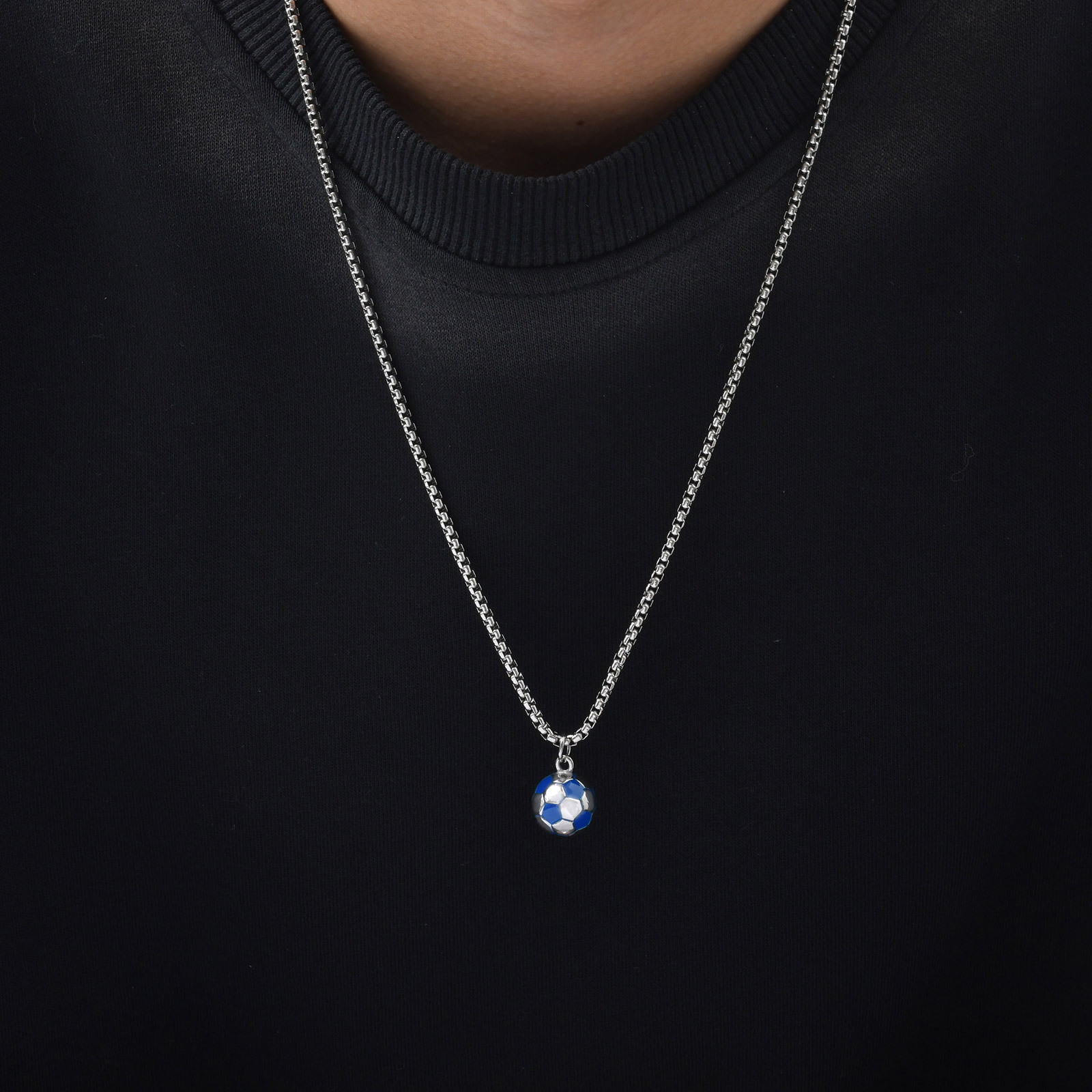 Wear this stainless steel soccer ball pendant necklace for men, built with a balanced round form that sits centered on the chest and keeps a steady, focused presence in daily wear.