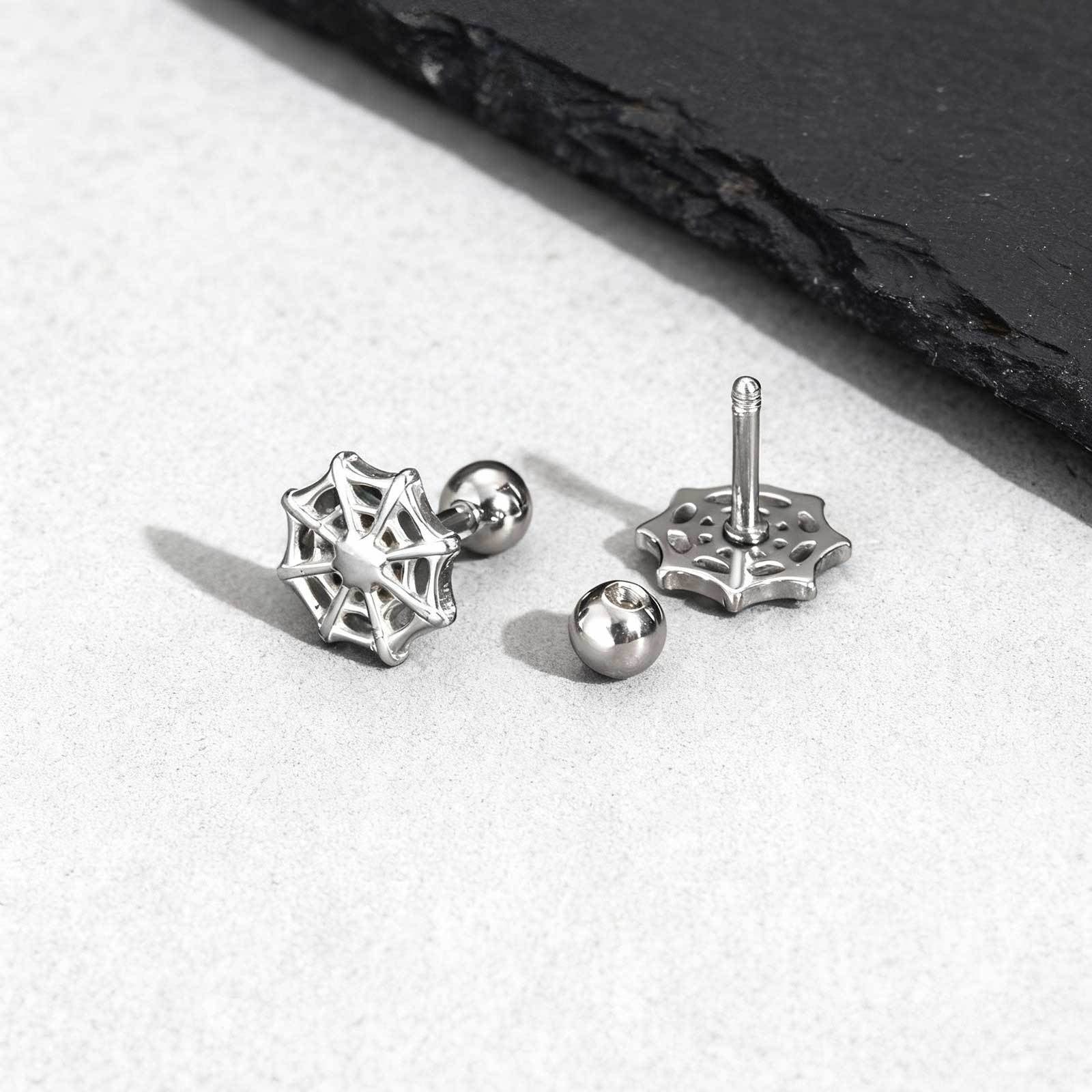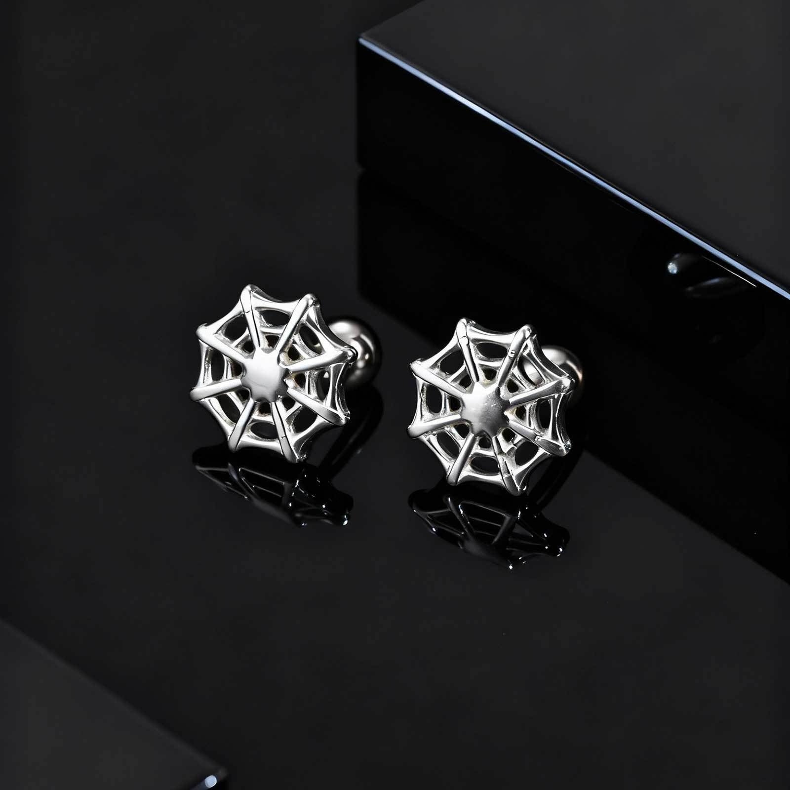 Kemstone Stainless Steel Spider Web Stud Earrings – Punk Gothic Style for Men ES-770