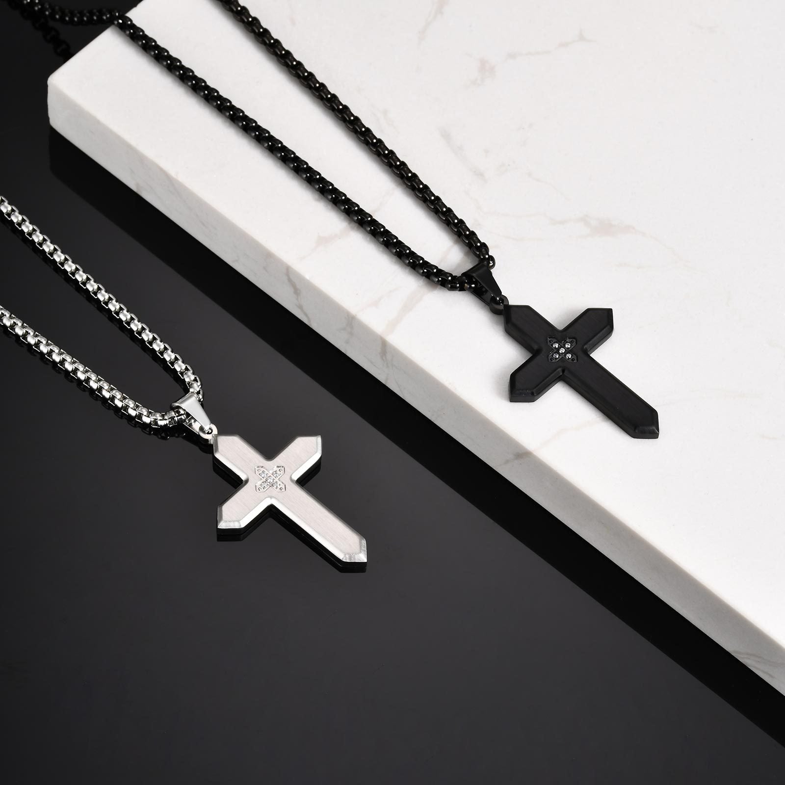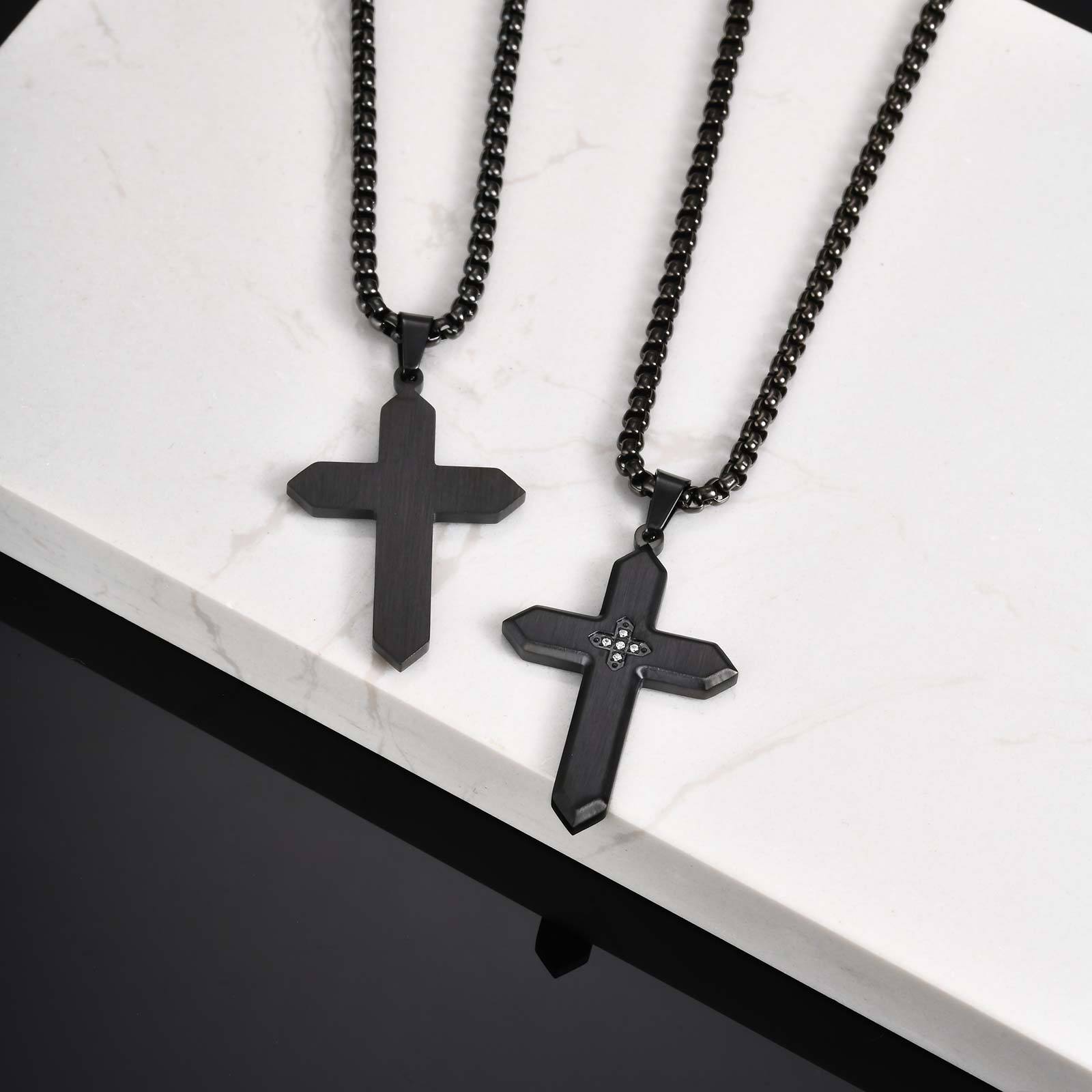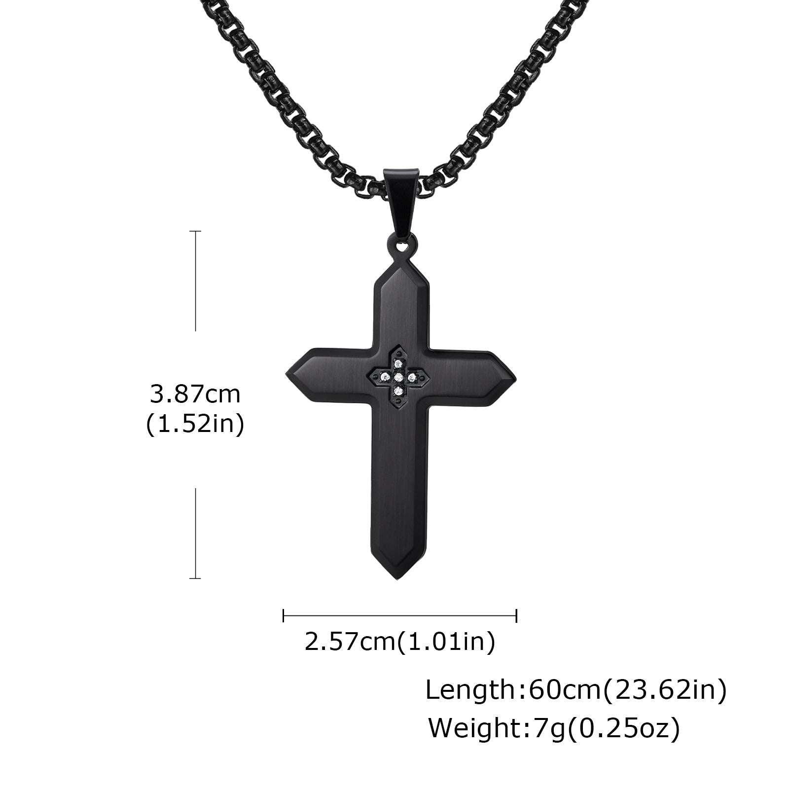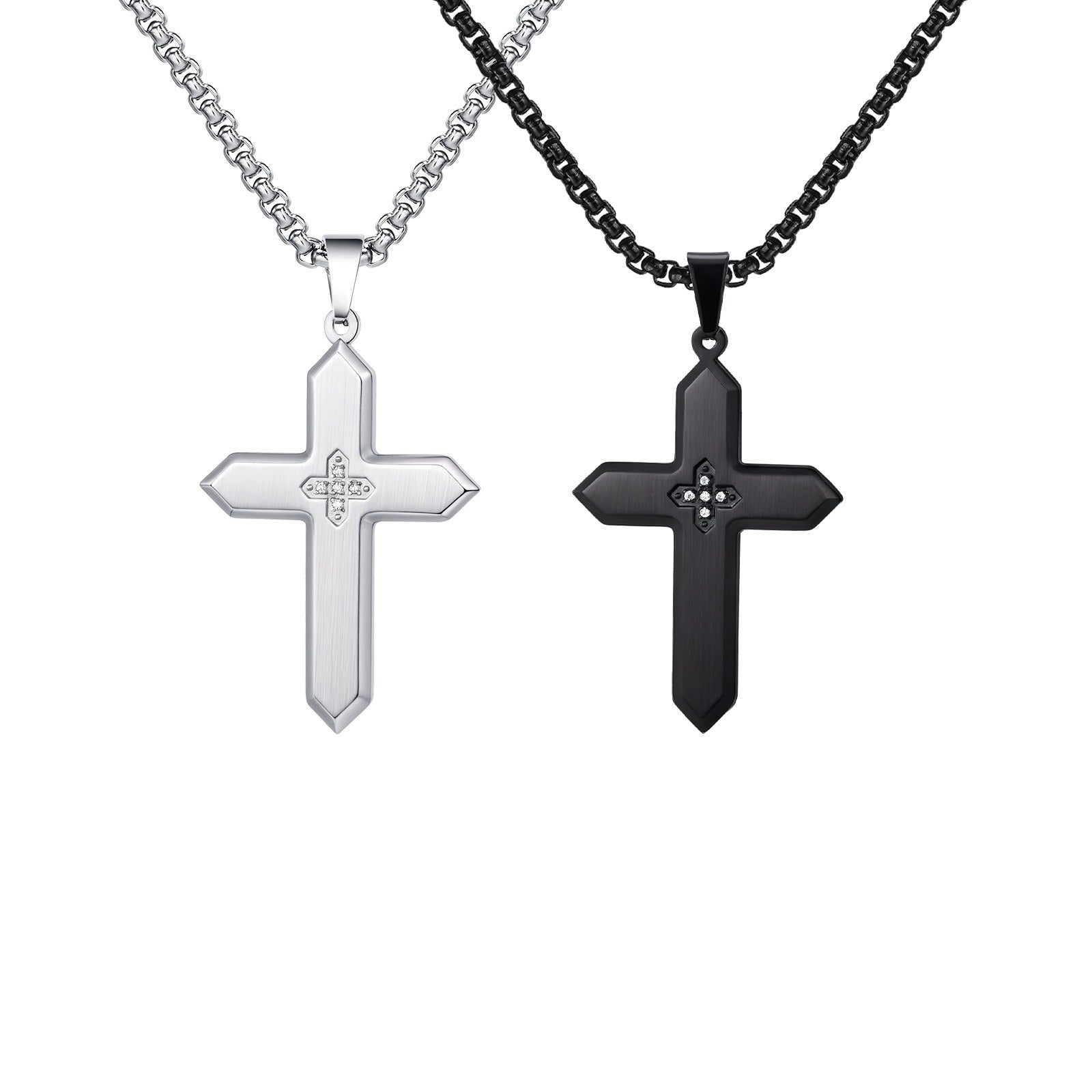 Kemstone Stainless Steel Brushed Cross Pendant Necklace with Cubic Zirconia – Square Link Chain for MenPN-2198