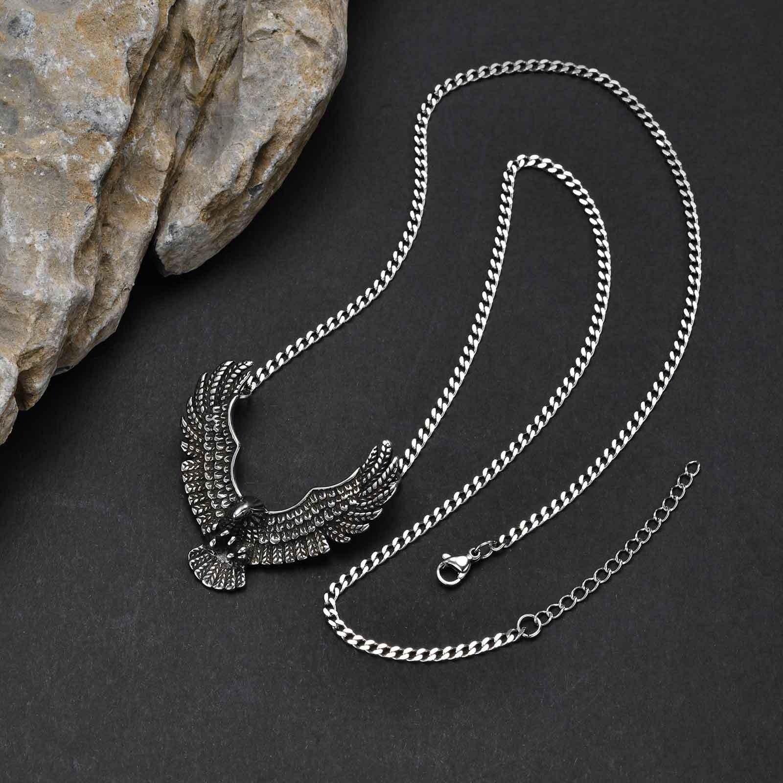 Embrace fearless style with this stainless steel eagle necklace. A punk gothic pendant for men, symbolizing freedom, courage, and individuality.