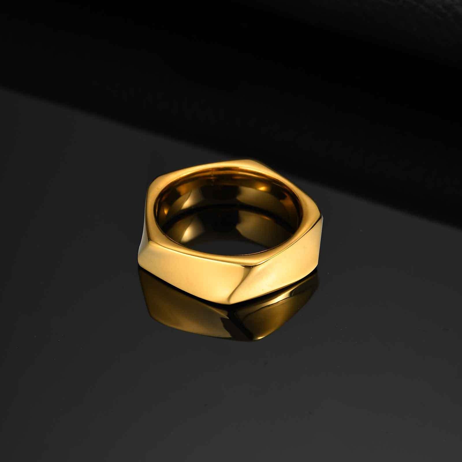 Kemstone Stainless Steel Geometric Ring – Pentagon Minimalist Band for Men RC-915