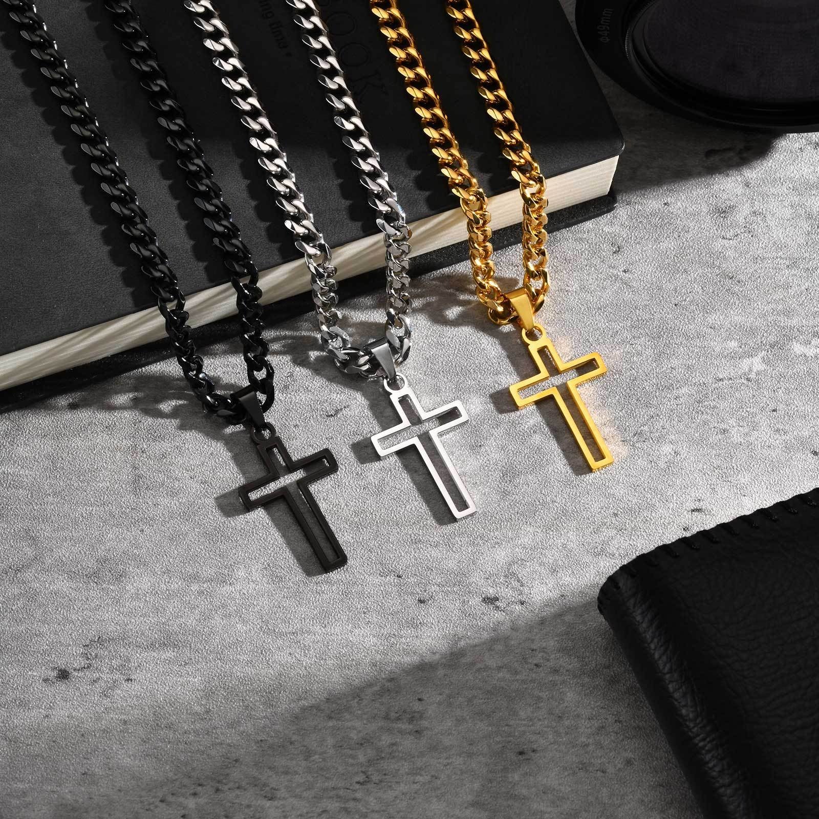 Stand out with a hollow cross pendant, symbolizing strength, faith, and individuality.