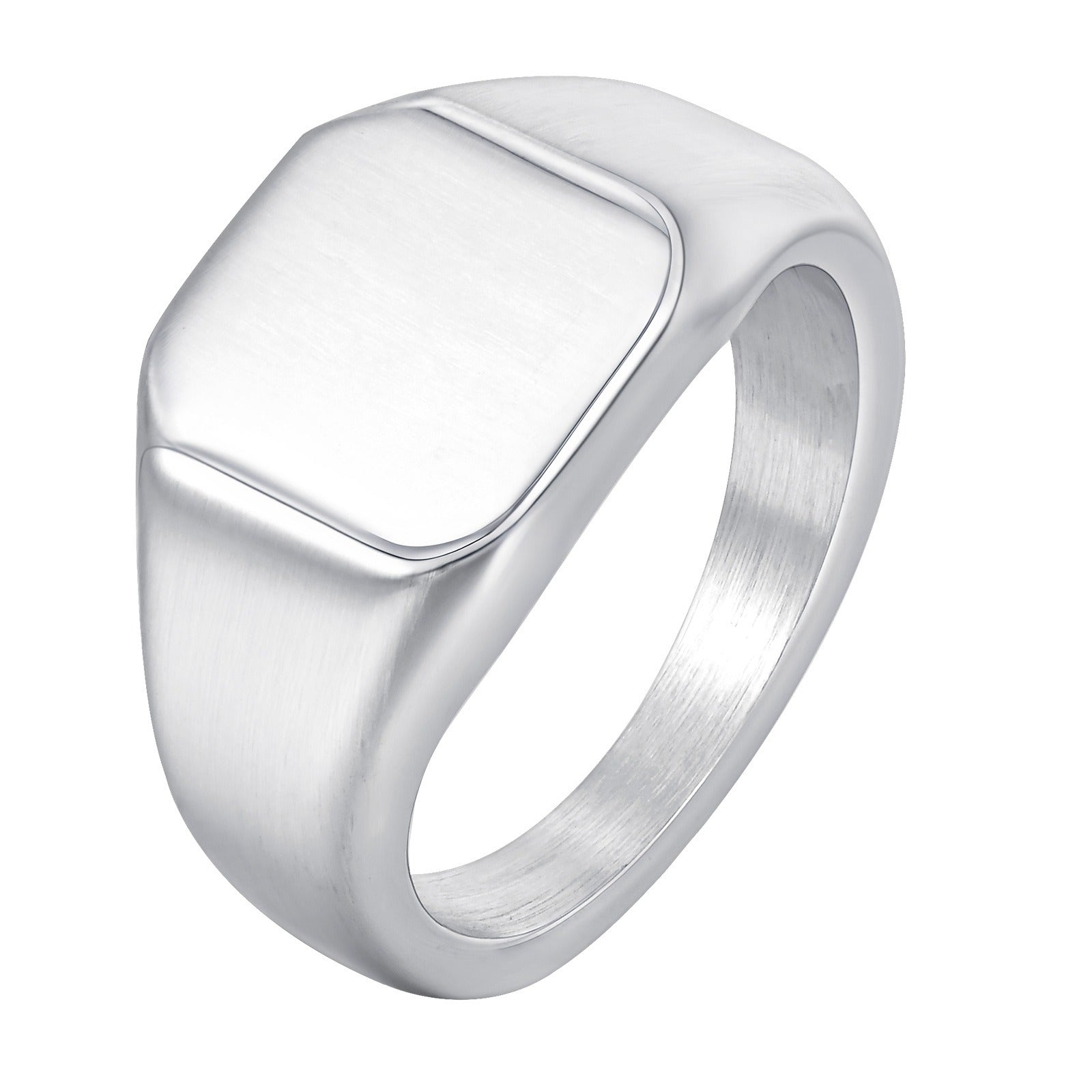 Wear this stainless steel square signet ring in brushed silver. A minimalist men’s ring that reflects strength, identity, and modern confidence.