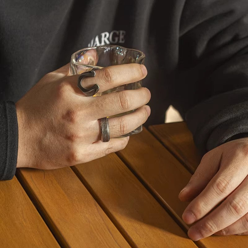 Wear confidence and style with this titanium steel brushed hoof ring for men. Featuring a vintage punk design, this ring combines boldness and timeless appeal.