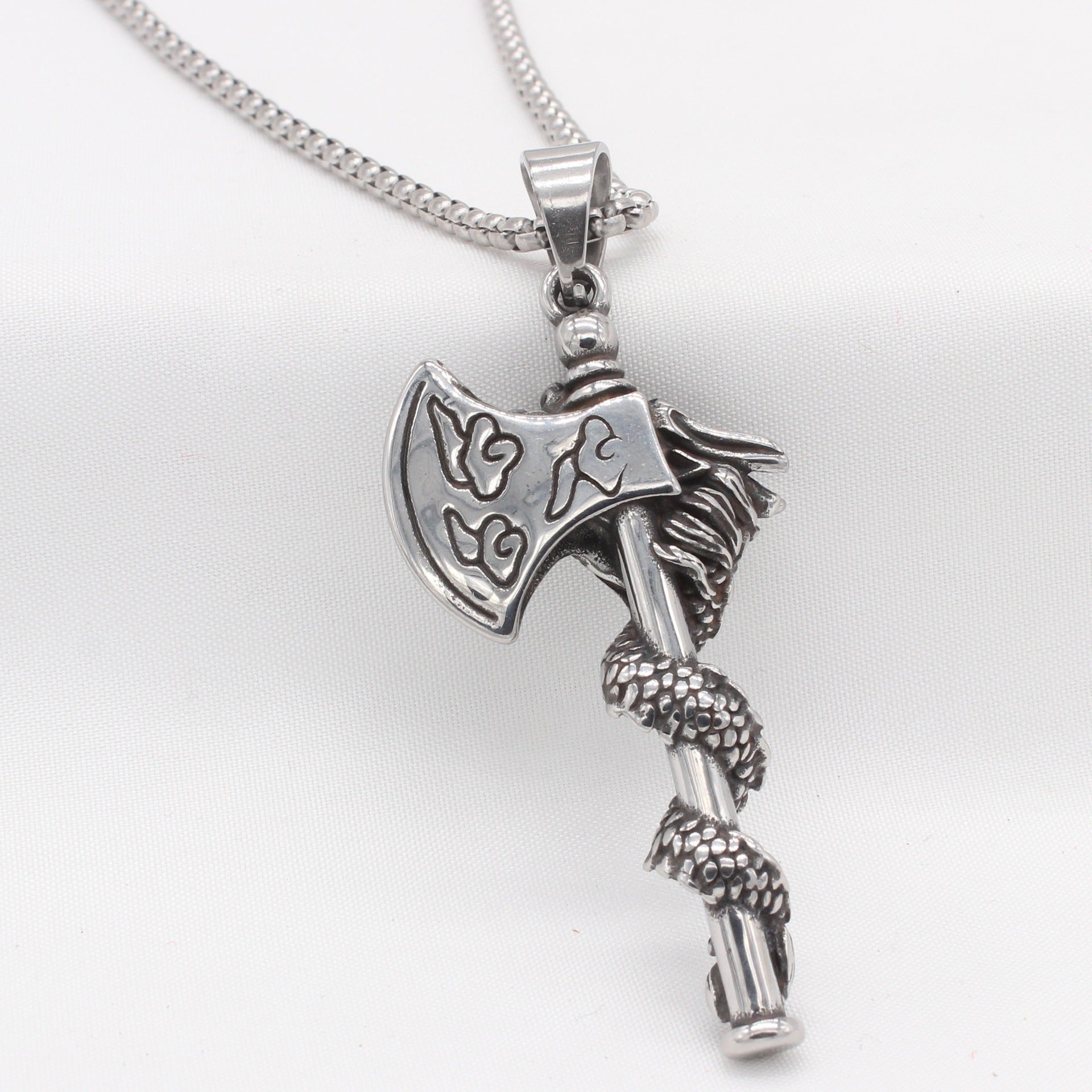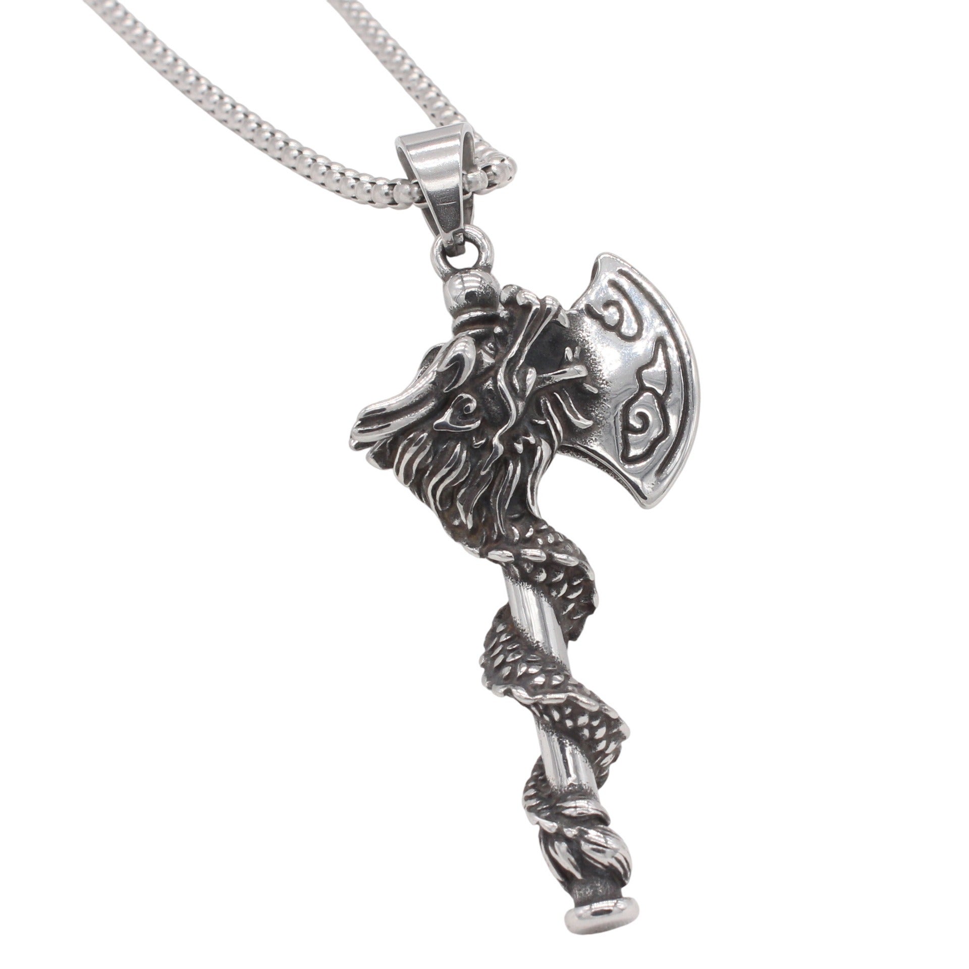 Kemstone Men’s Titanium Steel Dragon Axe Necklace – Viking-Inspired Jewelry A17-P1472