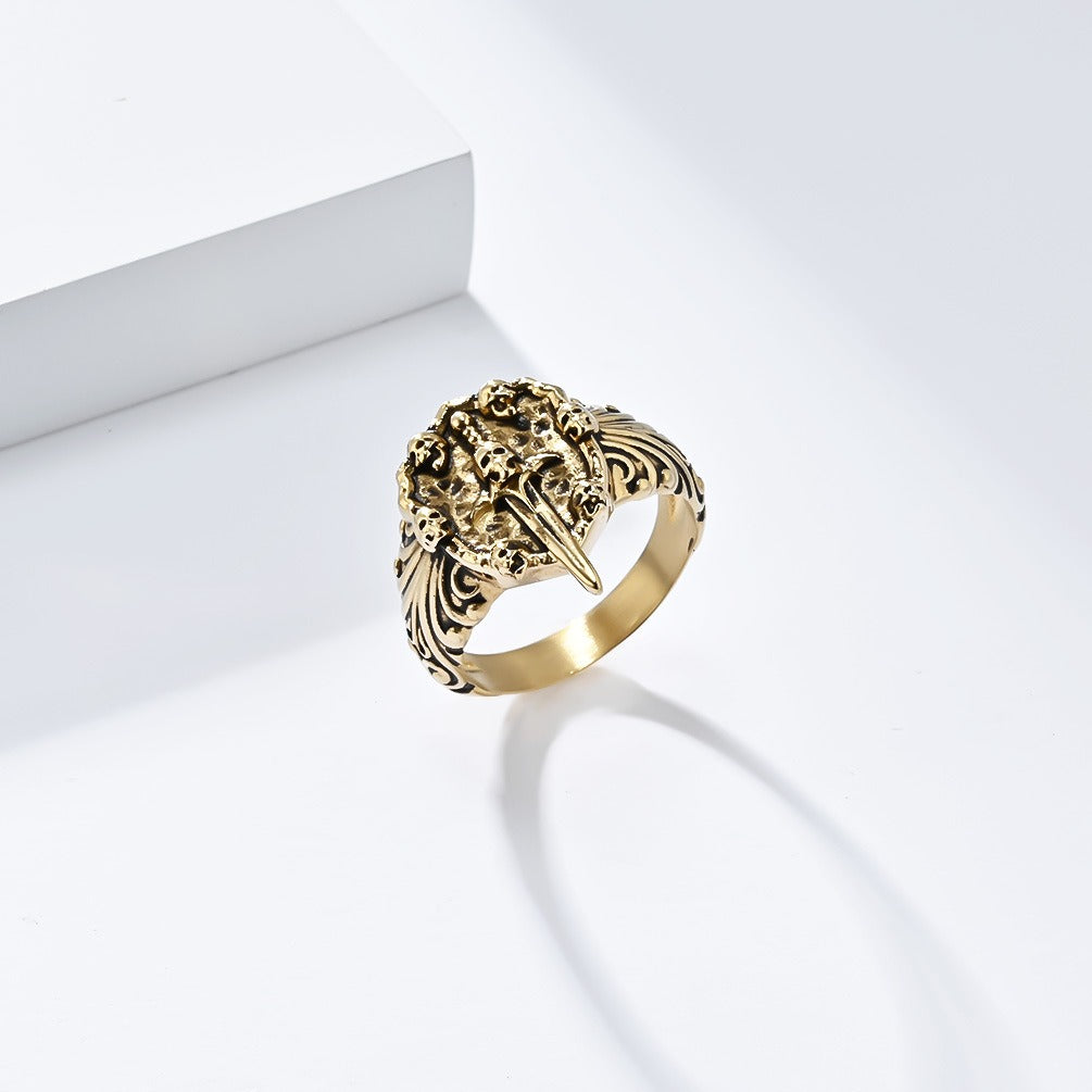Kemstone Titanium Steel Skull Sword Ring – Gothic Vintage Band K-R830