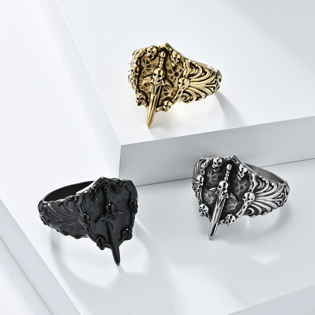 Express your dark edge with this titanium steel skull sword ring. A gothic design inspired by legends, symbolizing courage, defiance, and individuality.