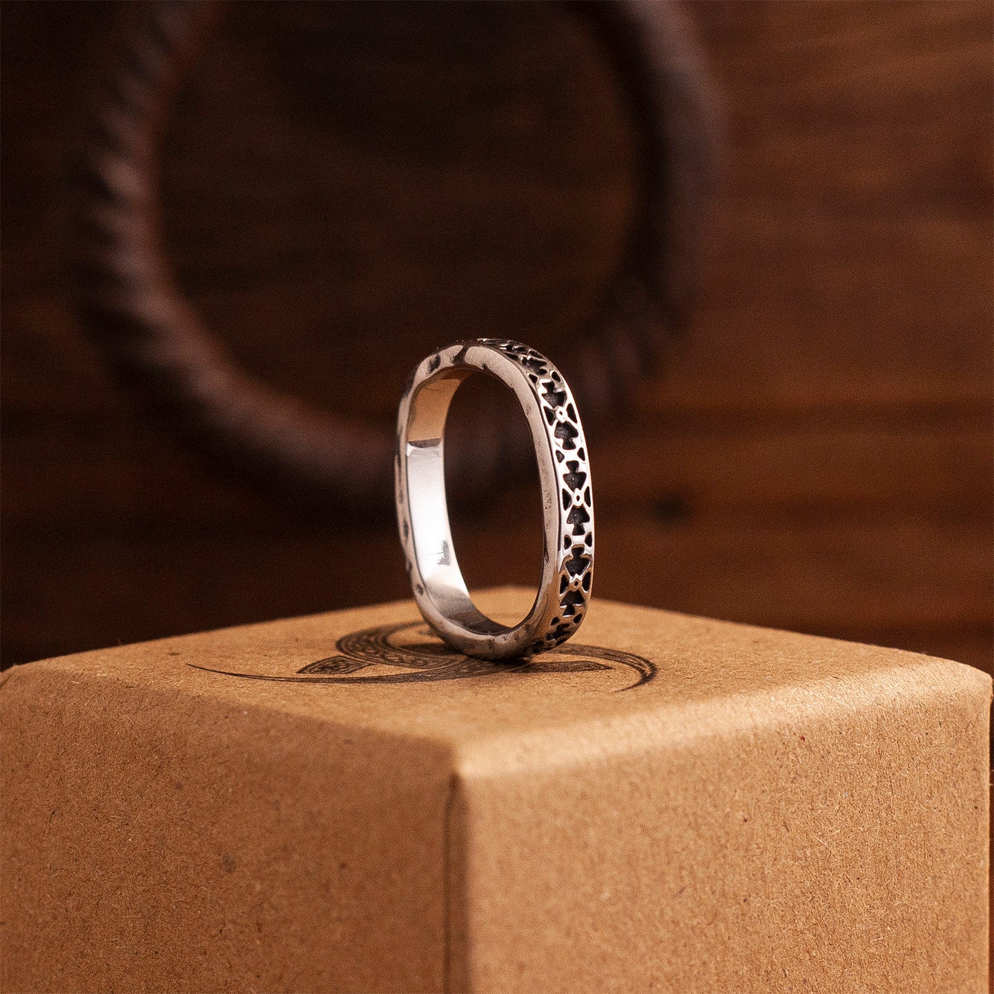 Combining multiple patterns, this ring provides a sophisticated and unique style, perfect for men who appreciate cultural aesthetics.