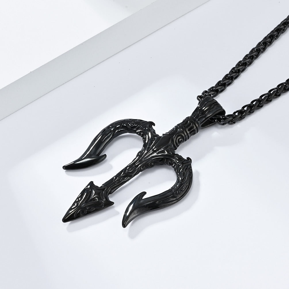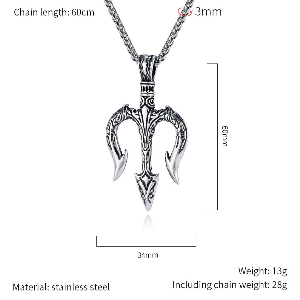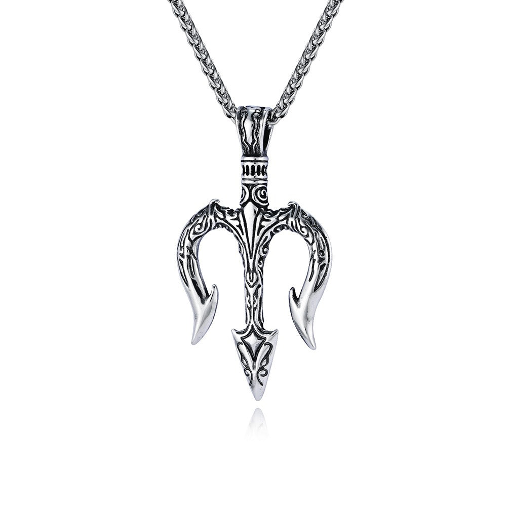 Kemstone Men’s Titanium Steel Poseidon Trident Pendant Necklace – Mythology Style K-PT552