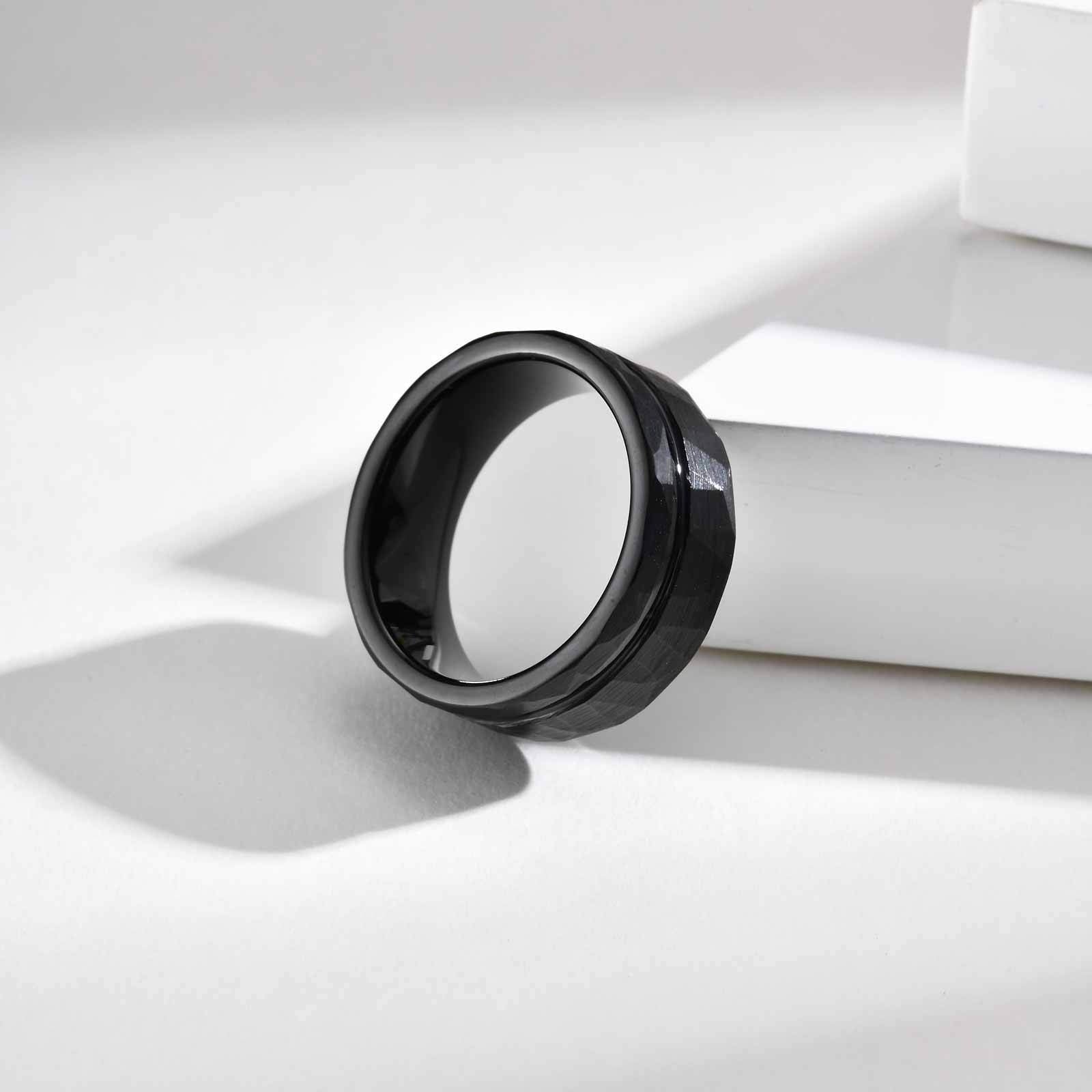 Celebrate strength and commitment with Kemstone’s tungsten carbide hammered ring. A bold 8mm black brushed band that blends rugged masculinity with timeless style.