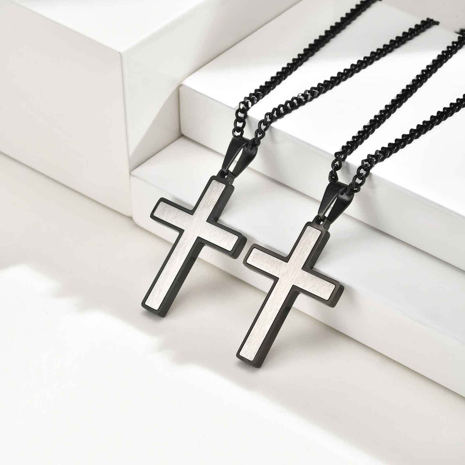 Wear the Kemstone two-tone stainless steel cross pendant necklace for men, combining modern design with classic symbolism for daily confidence and style.