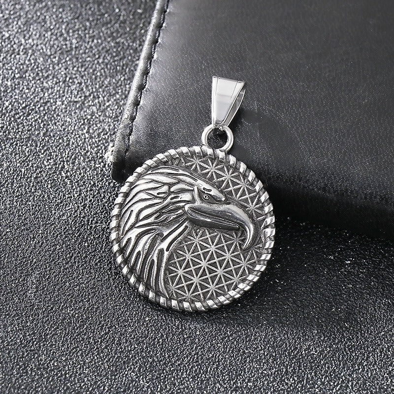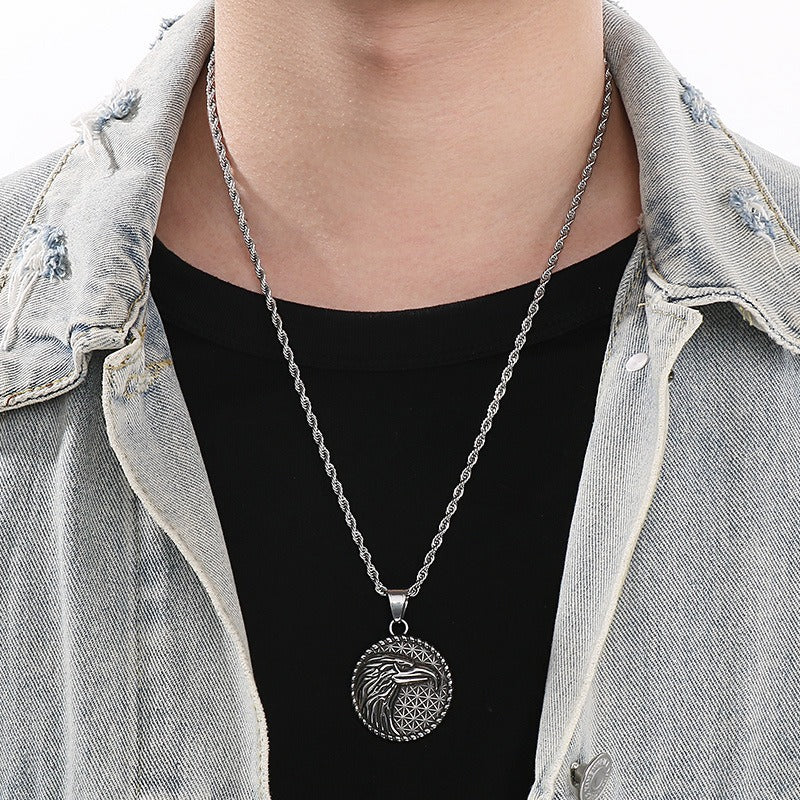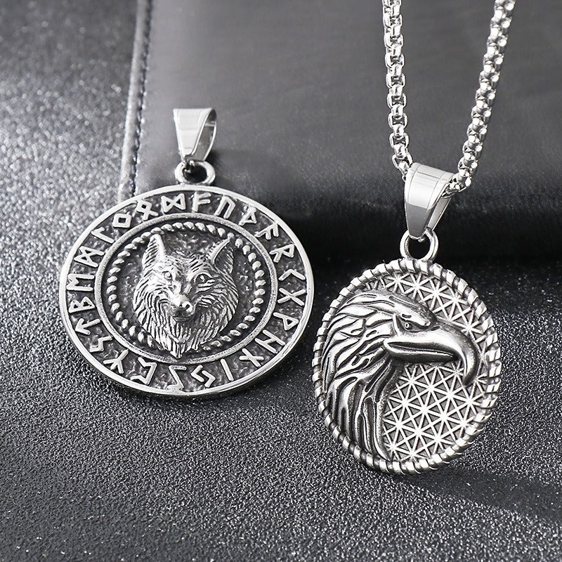 Kemstone Viking Wolf & Eagle Rune Necklace – Titanium Steel Courage Amulet KP116179-MZOZ