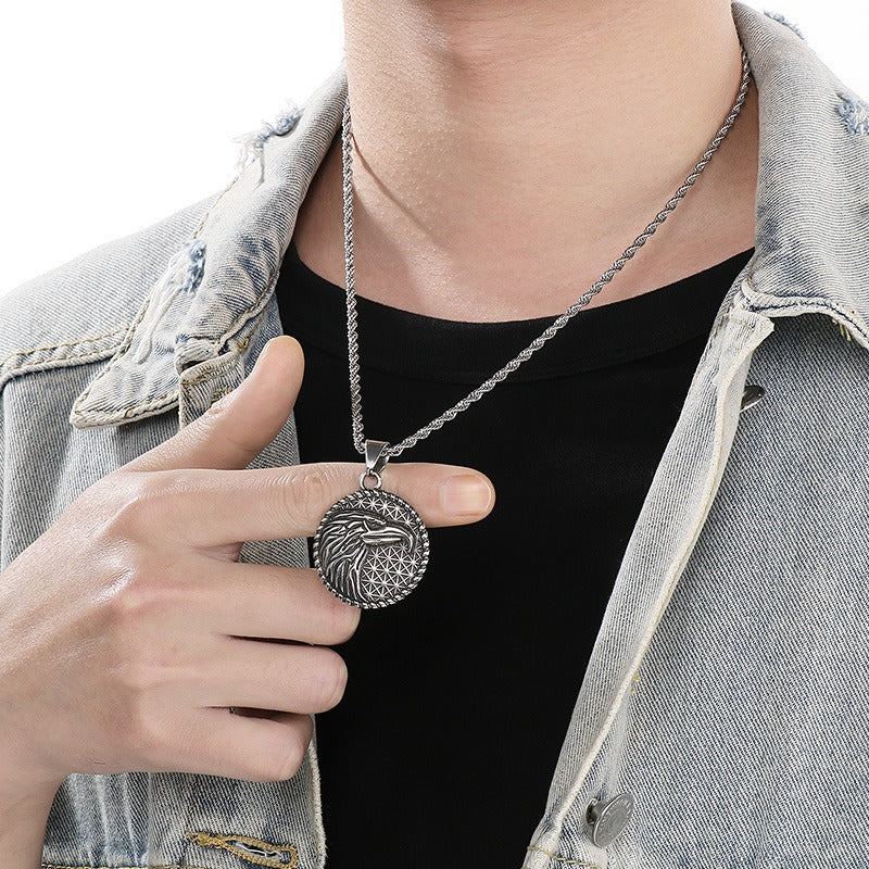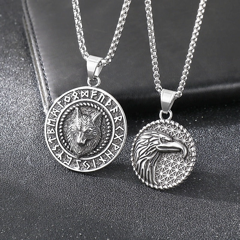 Carry courage and freedom with Kemstone’s Viking Wolf & Eagle Rune Necklace, a dual-sided titanium steel Norse amulet for men embracing strength and bold style.