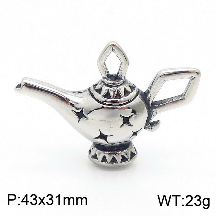 Wear symbolic meaning with this titanium steel Aladdin lamp pendant necklace, inspired by classic wish symbols and designed for confident everyday expression.