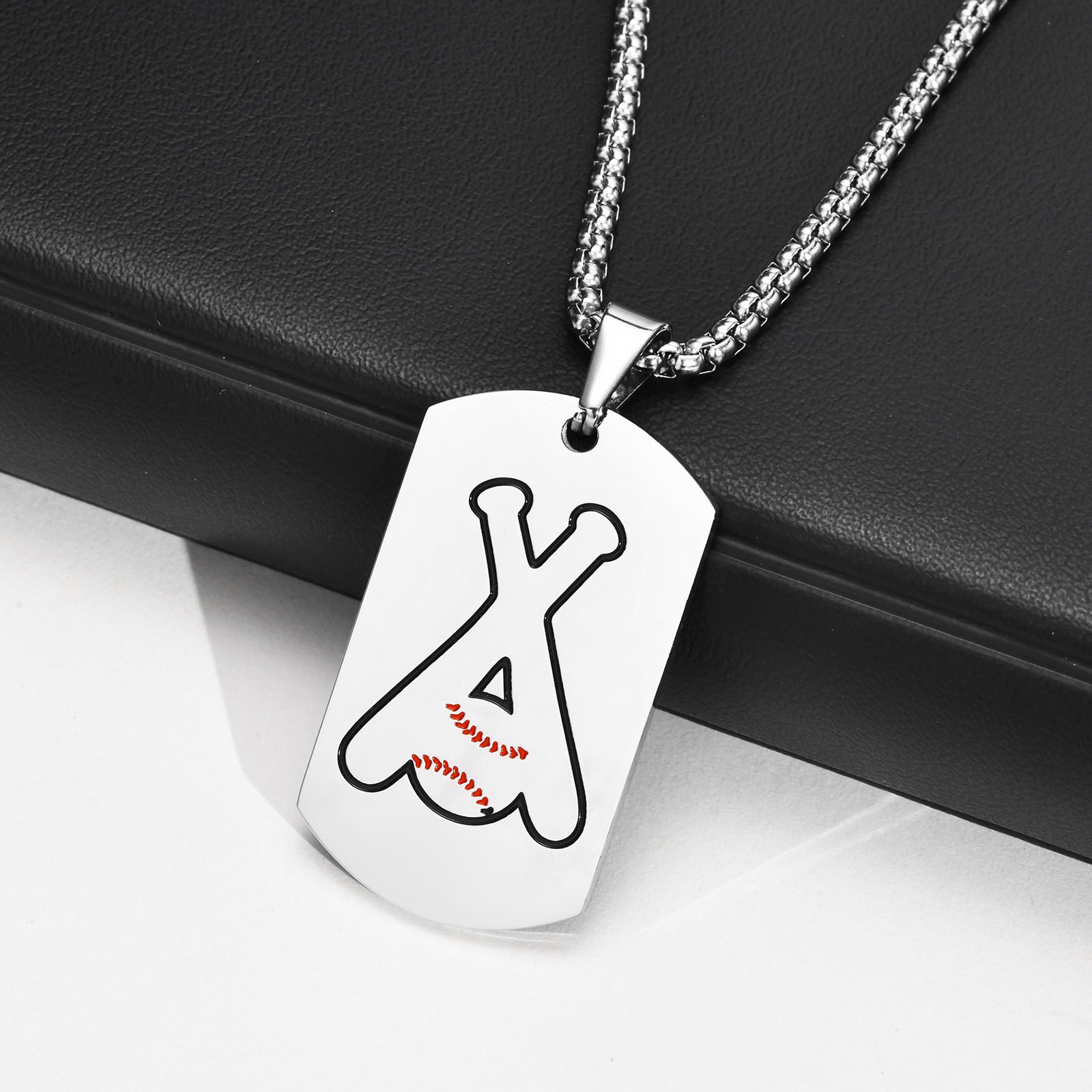 Wear this stainless steel baseball quote tag necklace for men, engraved with calm motivation and clean lines that sit centered on the chest with steady, composed presence.