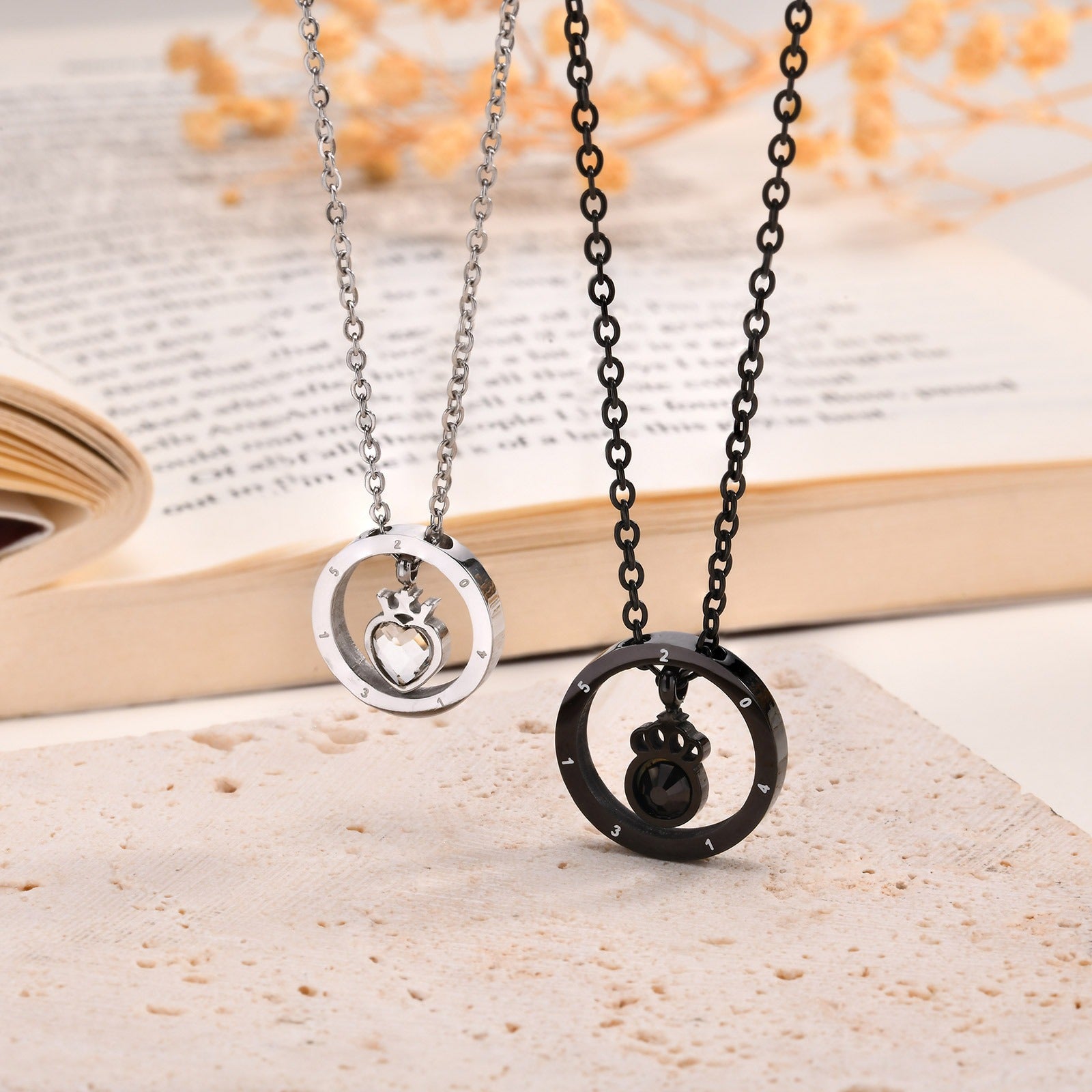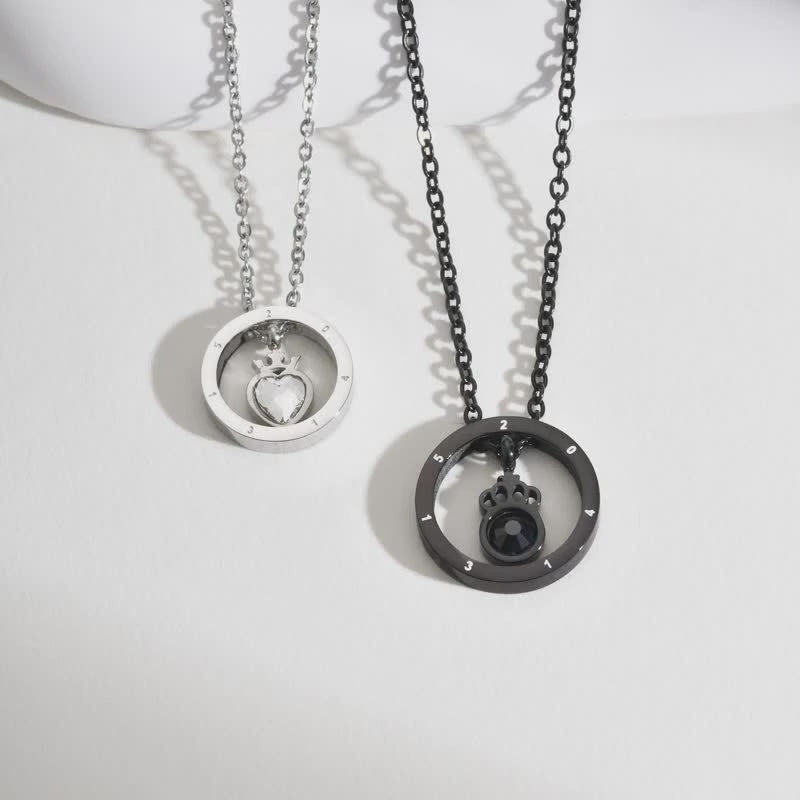 Unisex matte steel crown ring pendant with zircon accents. Gothic yet refined, durable stainless steel for street style or symbolic wear.