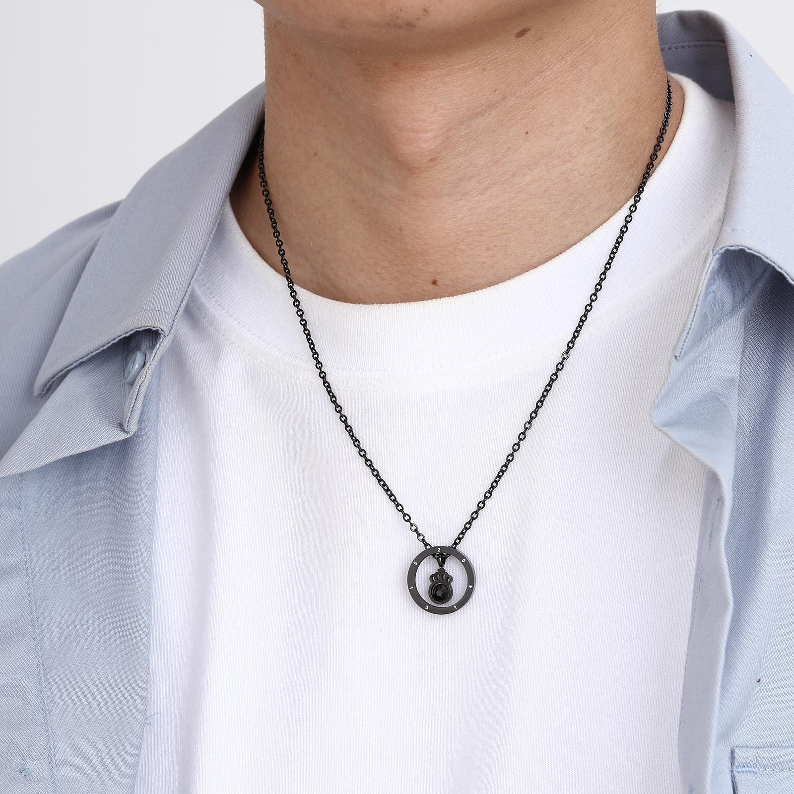Matte black crown ring pendant accented with zircon for a balance of boldness and refinement.