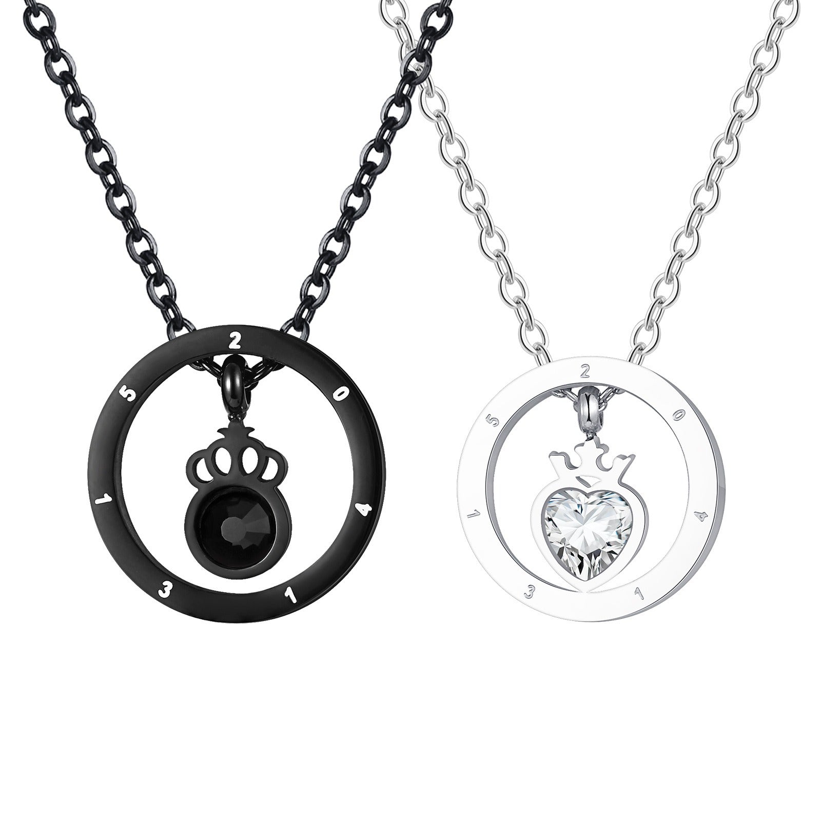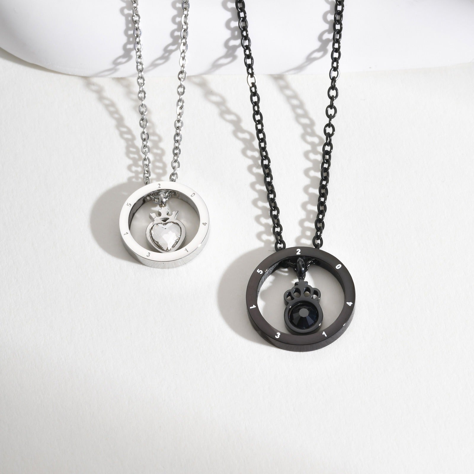 Kemstone Black Crown Ring Pendant Necklace – Matte Steel & Zircon Gothic Jewelry