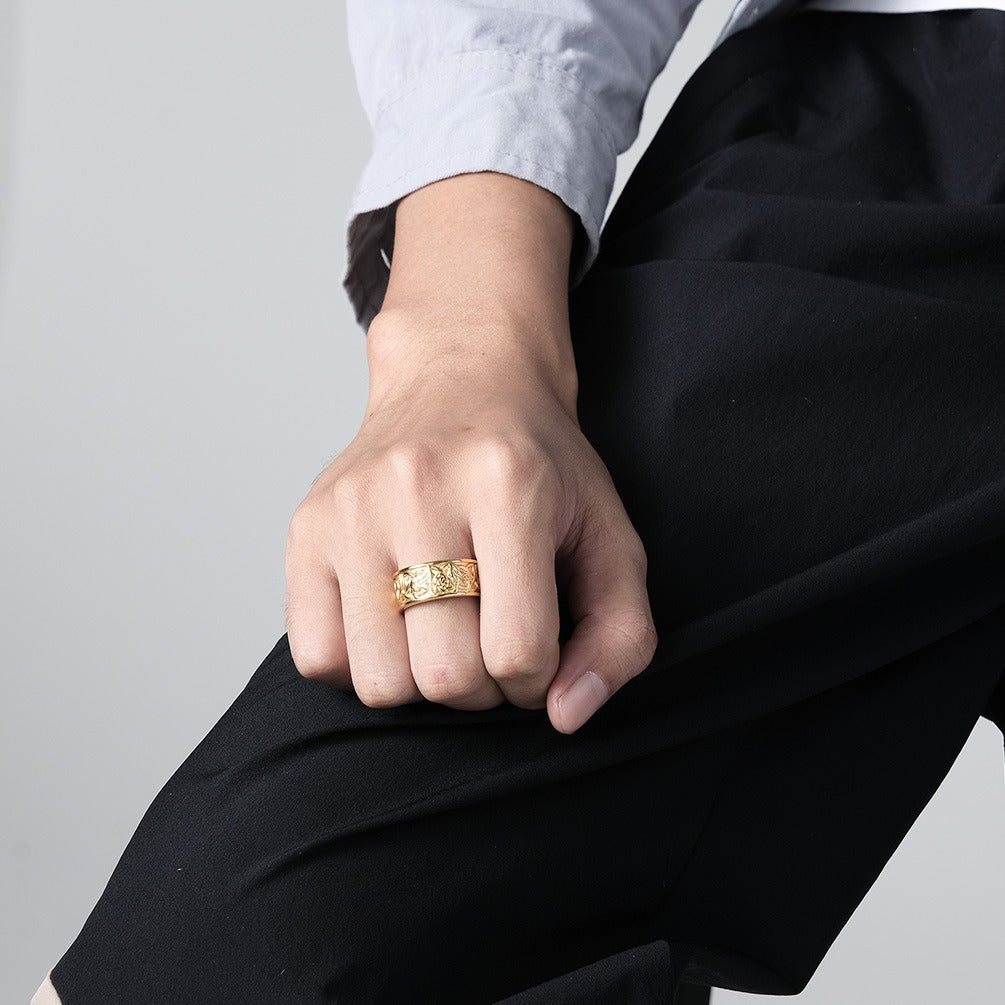 Available in silver, gold, and black finishes, this ring complements a range of styles, from casual to more formal looks.