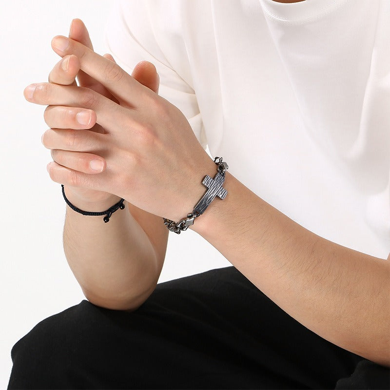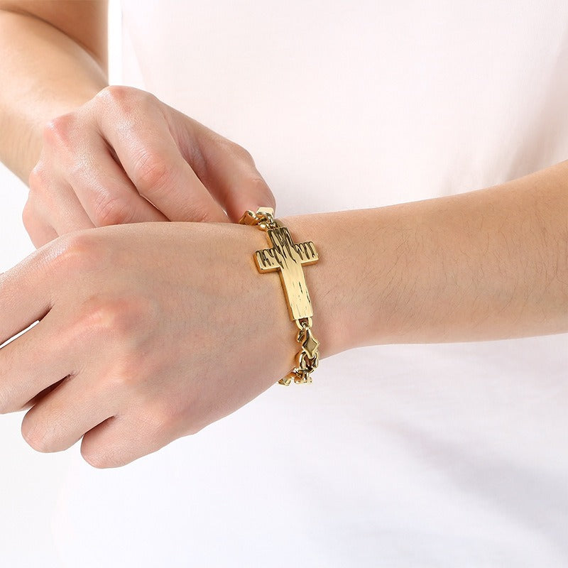 Kemstone Cross Bracelet for Men Titanium Steel Hammered Texture Gold Silver Black KB211655-KFC