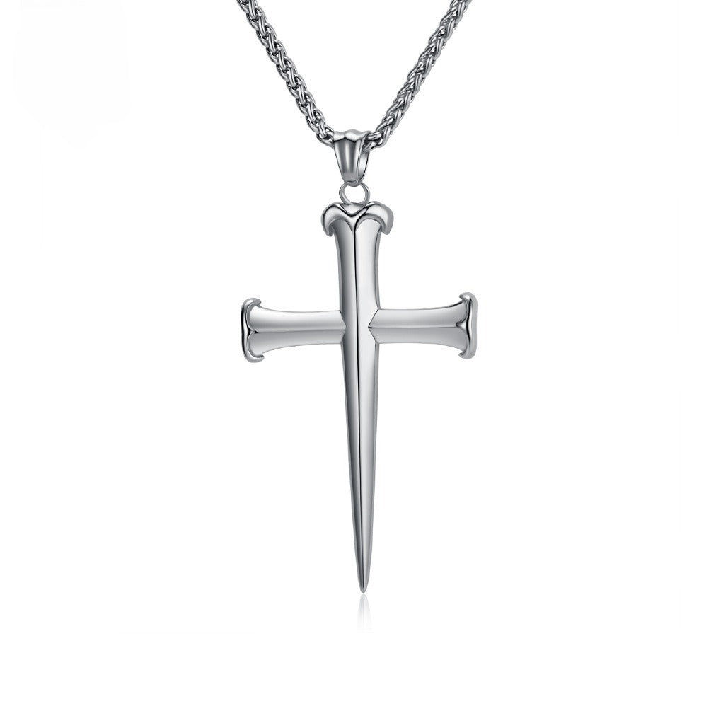 Wear a polished stainless steel cross pendant necklace for men. Clean lines, vintage character, and a confident tone designed for everyday wear.