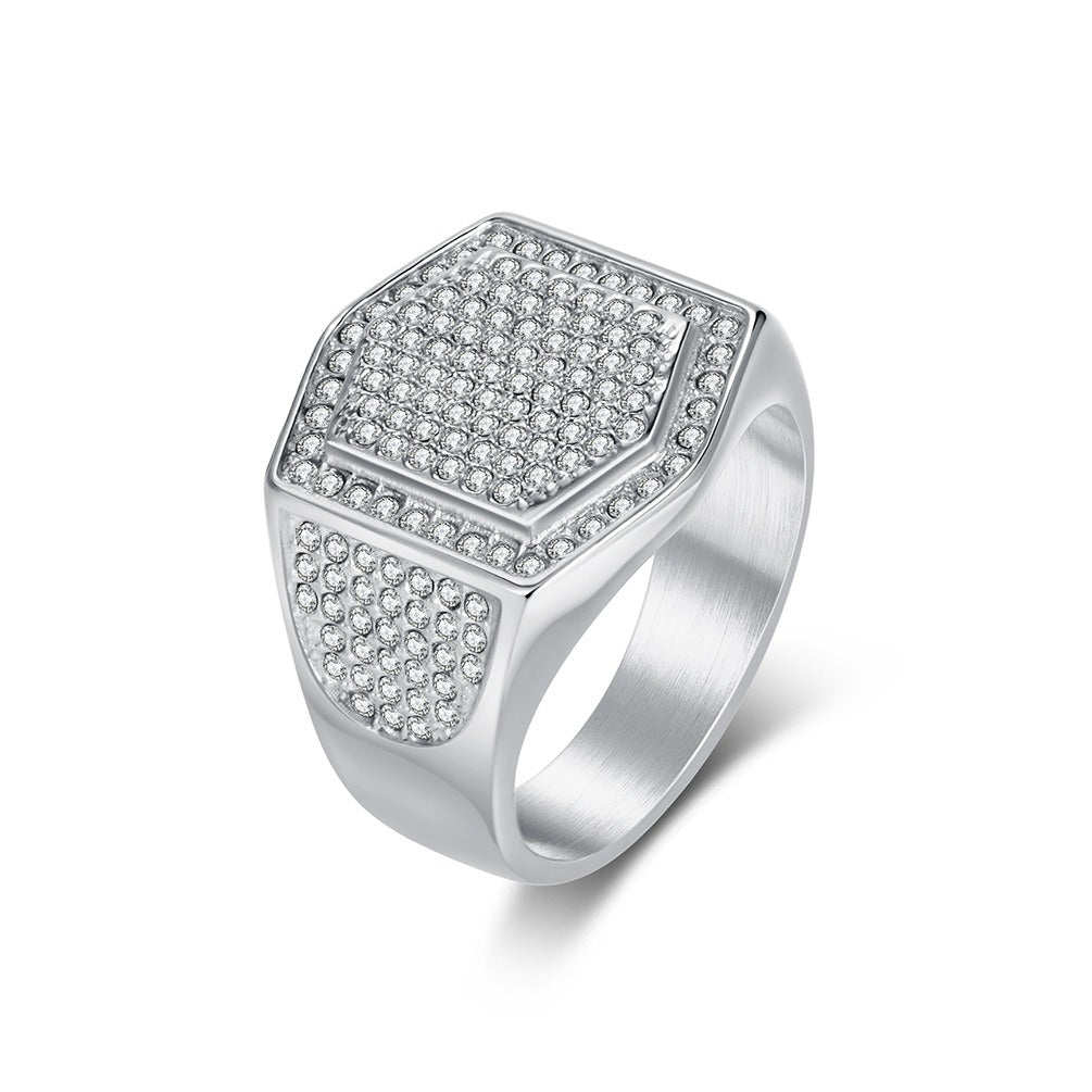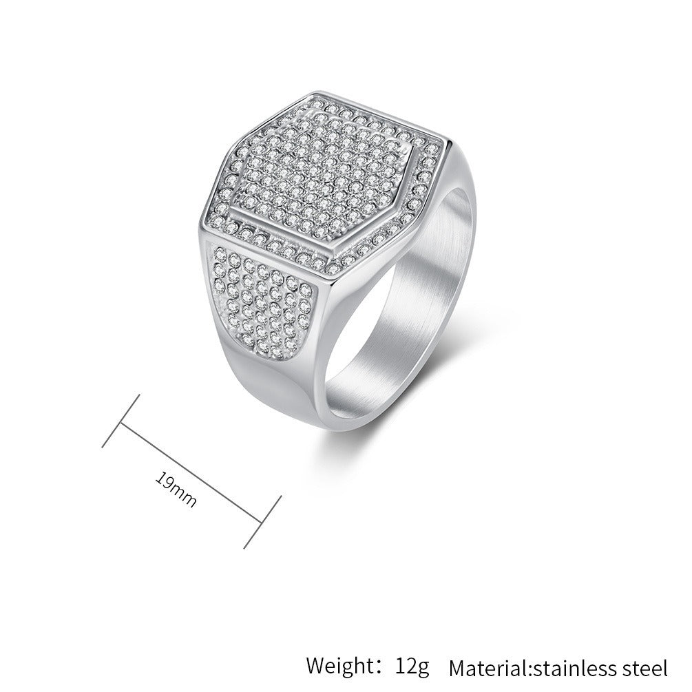 Kemstone Stainless Steel Cubic Zirconia Signet Ring for Men – Paved Hip Hop Style K-R1116