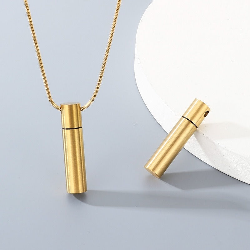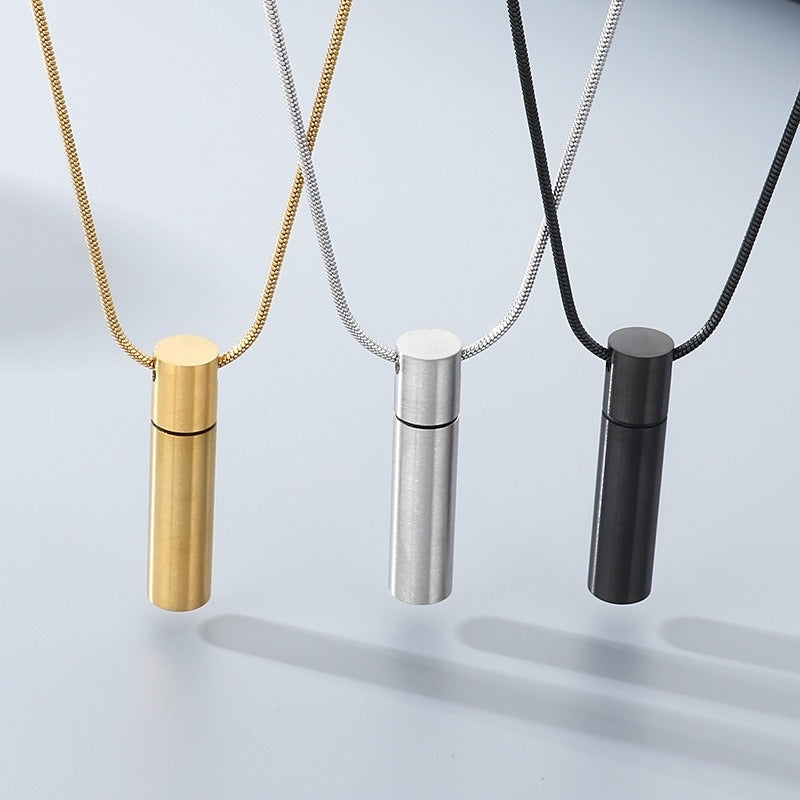 Kemstone Cylindrical Storage Necklace – Stainless Steel Screw-Cap Pendant for Men & Women KN299102-ZLA