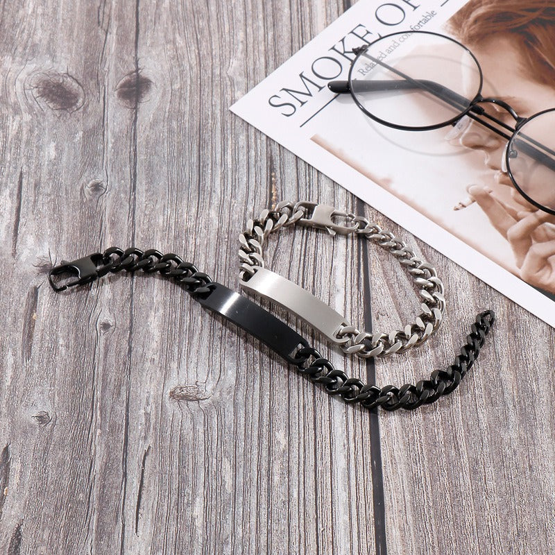 Wear this titanium steel ID plate Cuban chain bracelet and feel the clean weight and solid structure settle naturally on the wrist, creating a controlled, confident street profile.