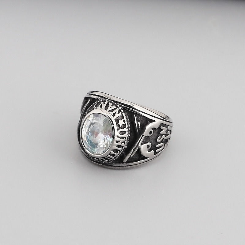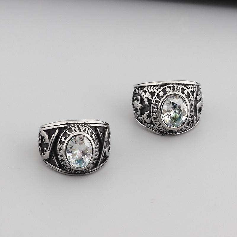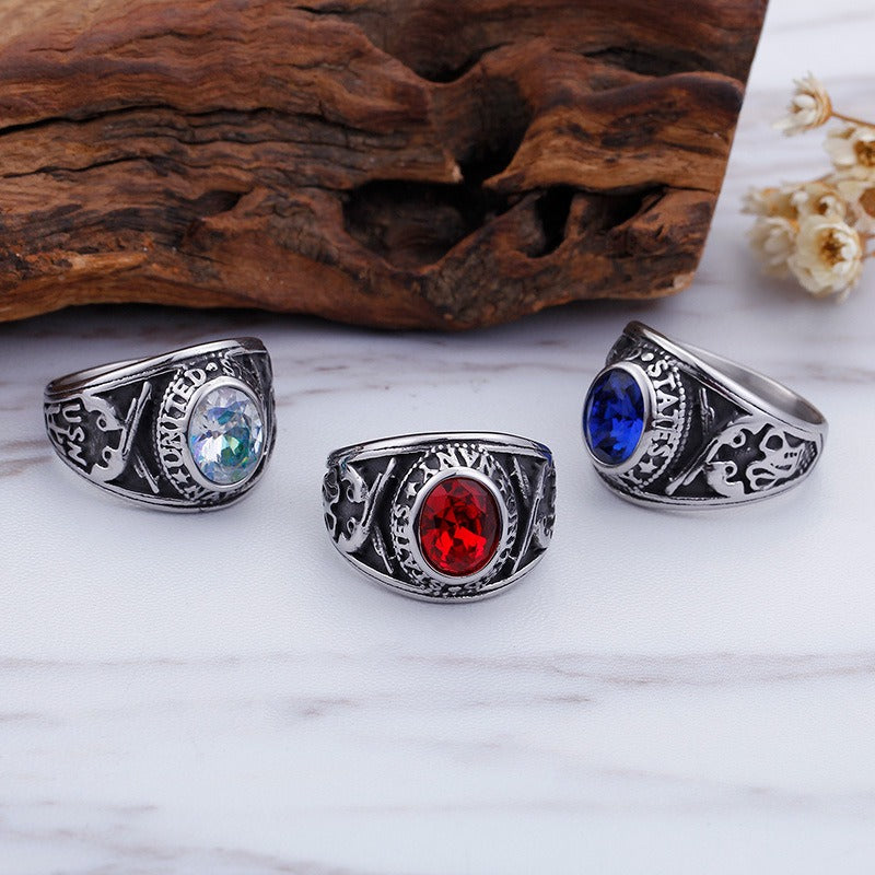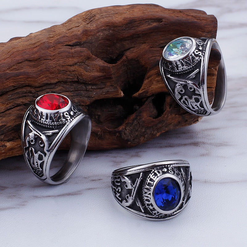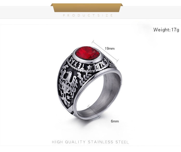 Kemstone Eagle Ring with Red/Blue Gemstones – Titanium Steel Punk Jewelry for Men | Gothic Streetwear Style KR45098-K