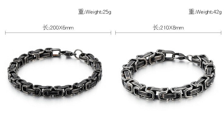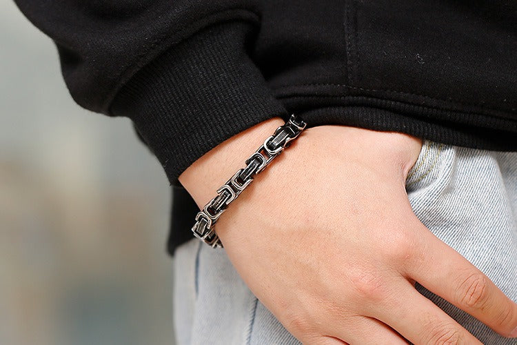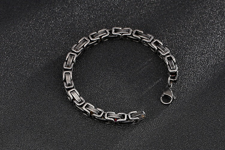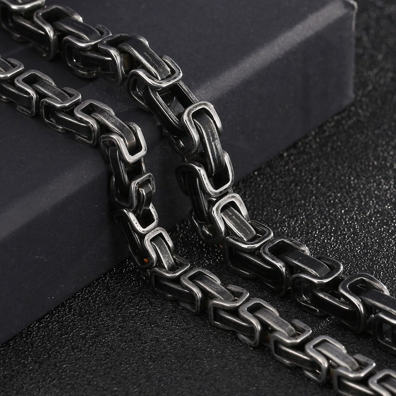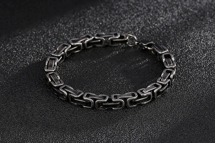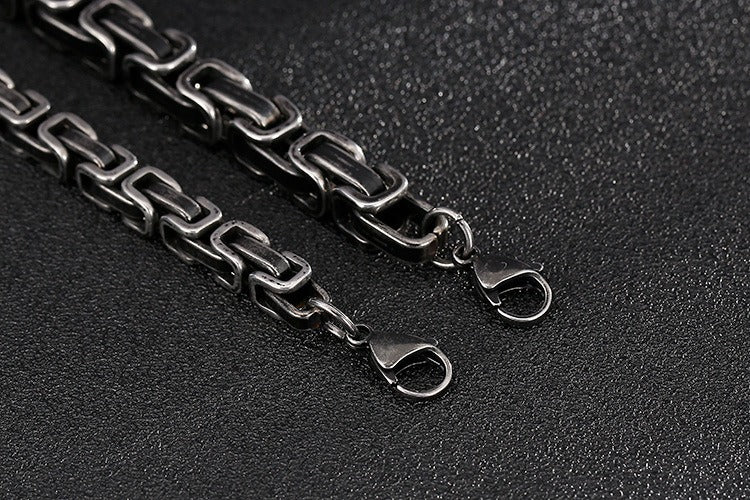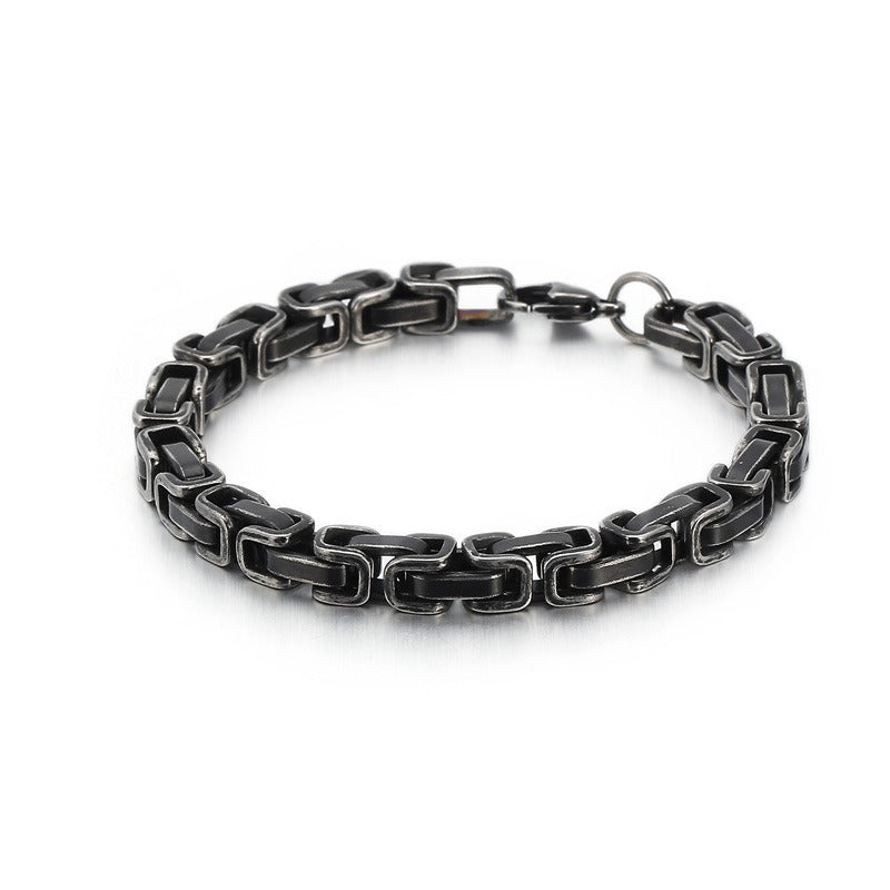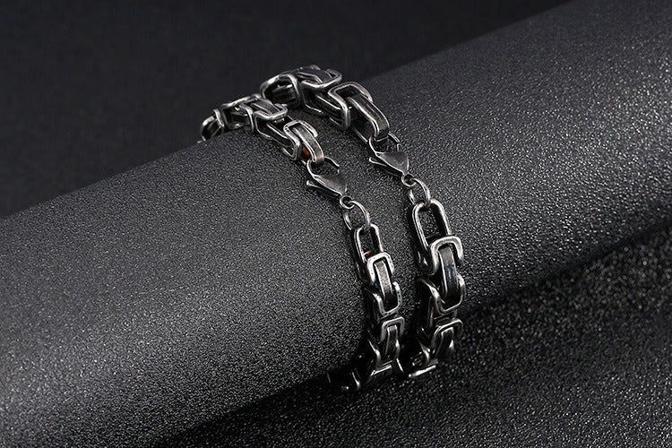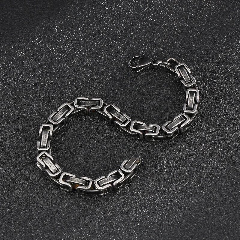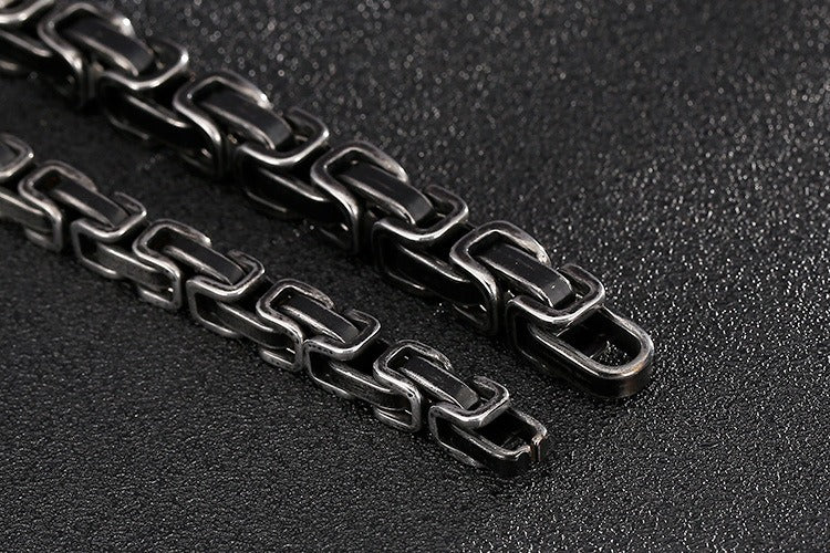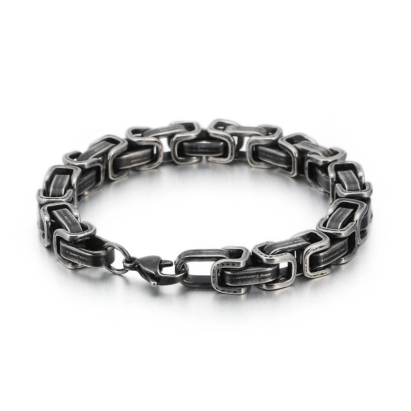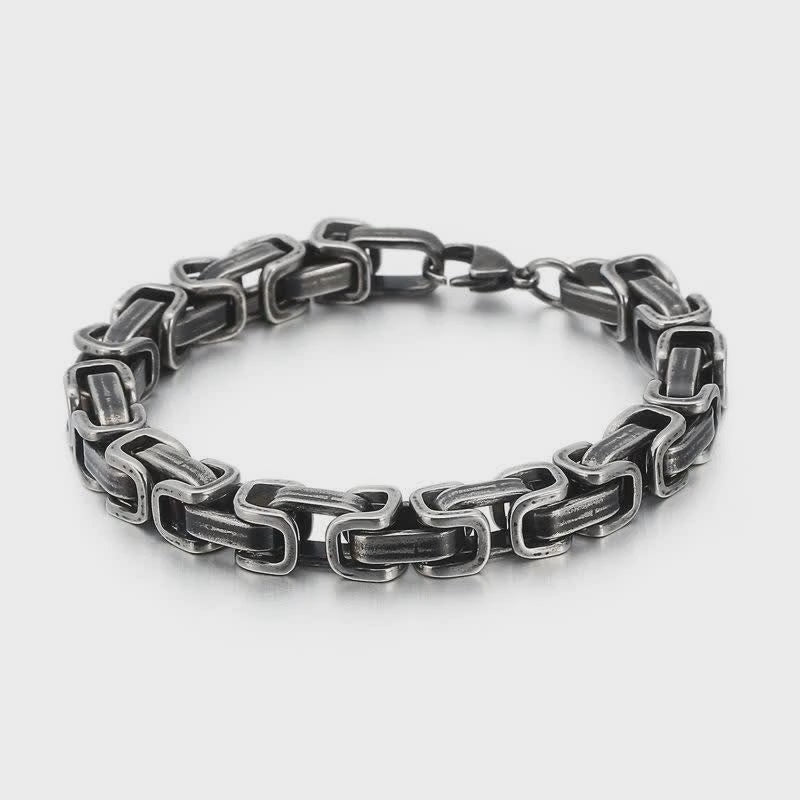 Forged from heavy-duty stainless steel, this handcrafted emperor chain bracelet draws inspiration from medieval Norse armor and Gothic royalty. Each interlocked link is precision-formed, echoing the grit of battle-worn chainmail with every subtle movement.