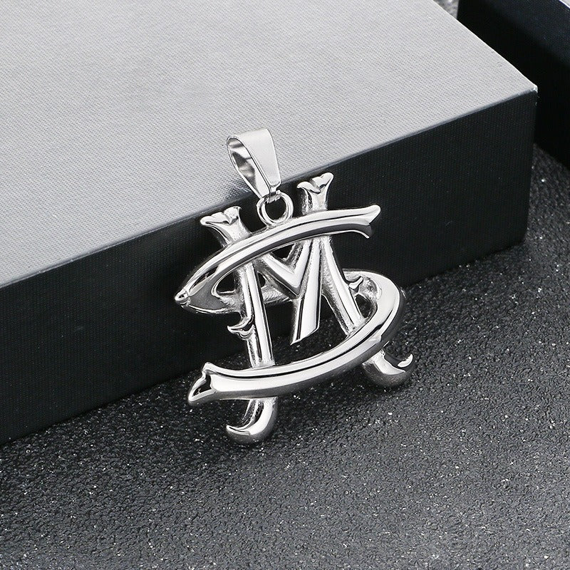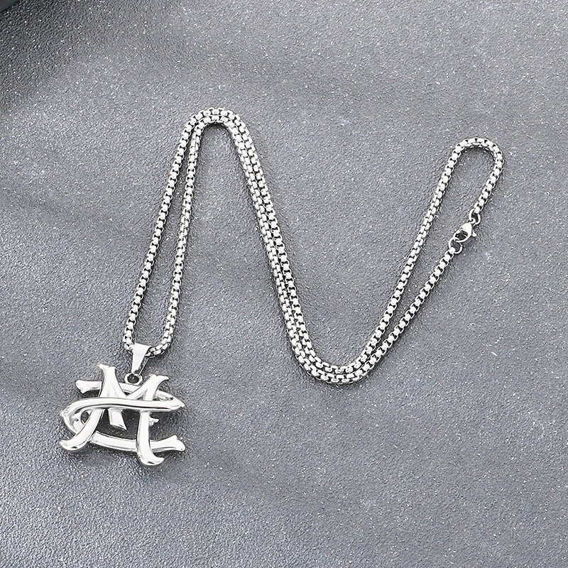 Kemstone Titanium Steel Letter M Pendant Necklace for Men Silver KP117821-KC