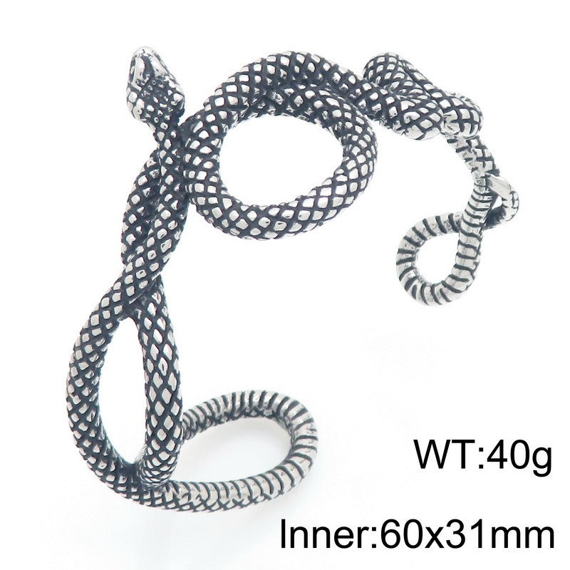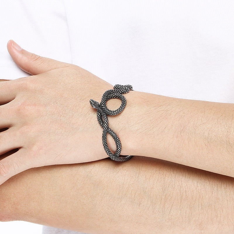 The bracelet body forms a coiled snake shape with textured scales.