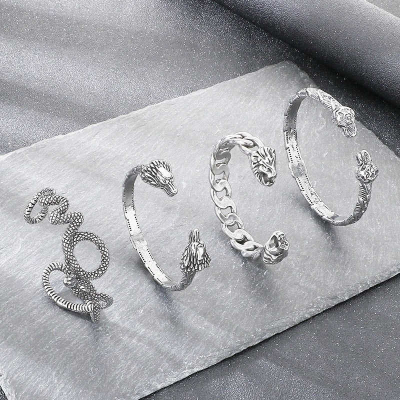 Sculpted animal heads and a solid metal cuff bring bold character to your wrist, creating a striking bracelet for modern styling.