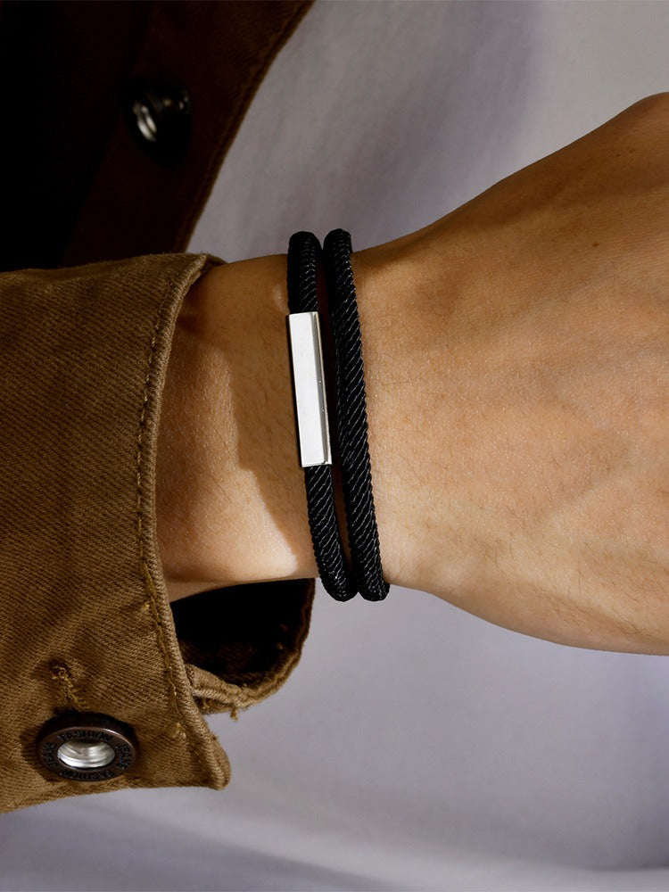 Men’s Double-Layer Milan Rope Bracelet – Stainless Steel Magnetic Clasp | Minimalist Street Style BR-1449