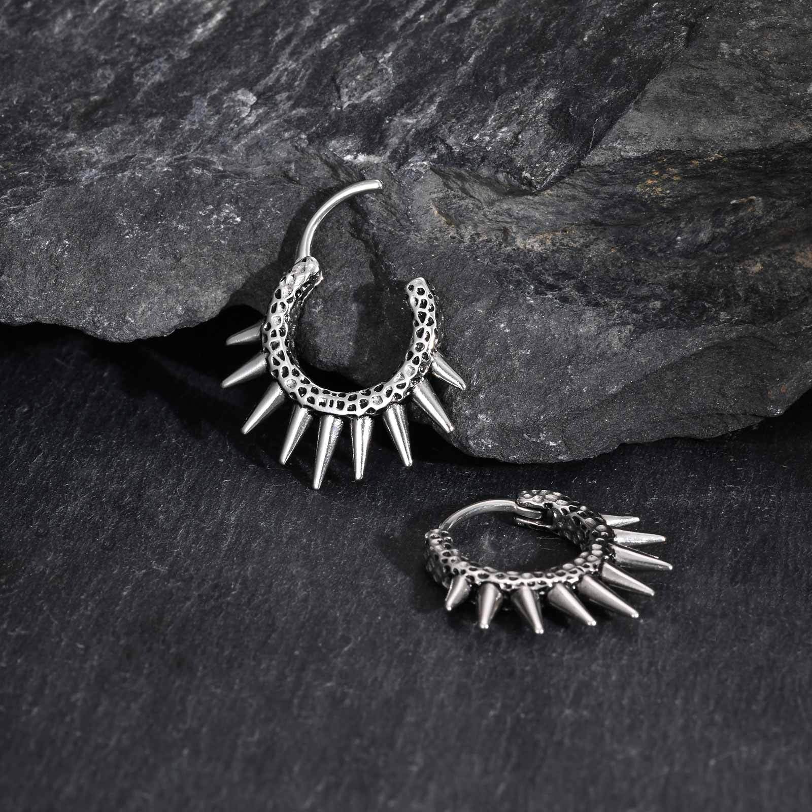Inspired by punk and gothic aesthetics, this hoop earring features raised spikes and a hammered silver texture, expressing fearless individuality.
