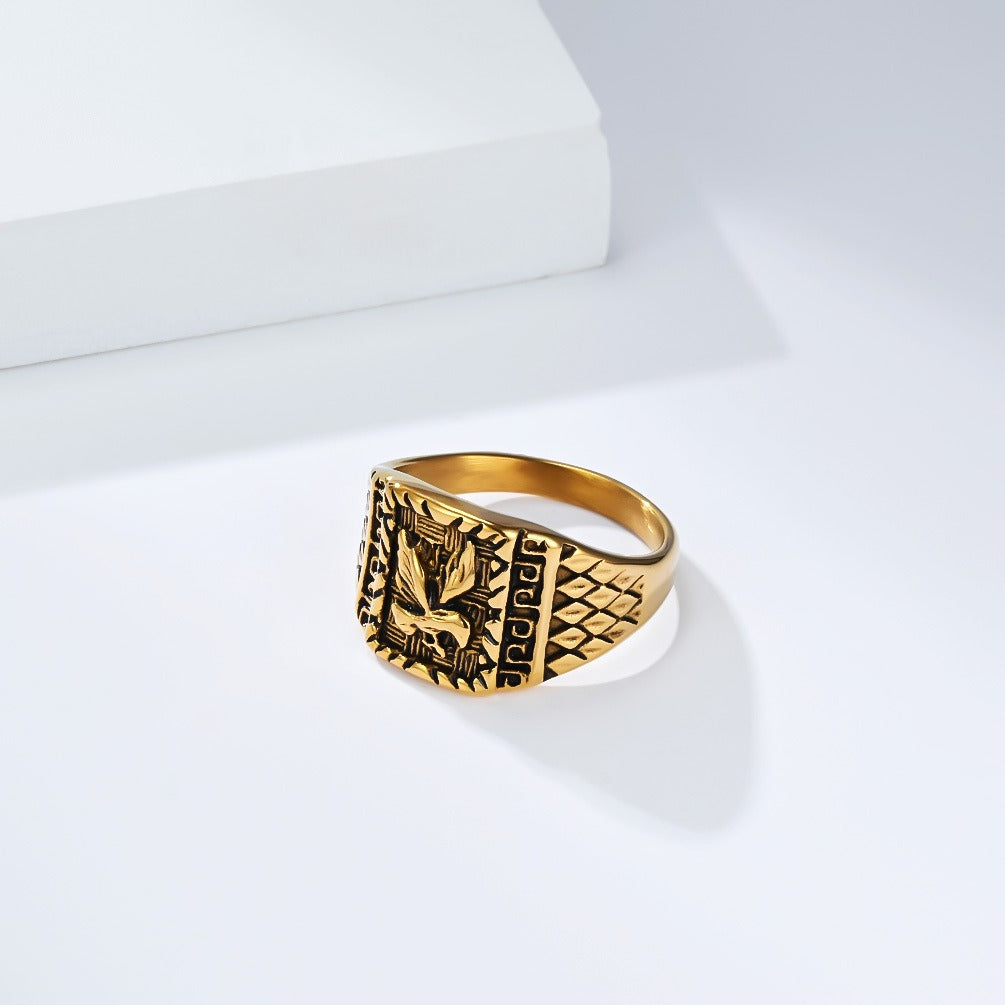 Embrace bold spirit with this men’s titanium steel eagle ring. A symbol of freedom and strength, crafted with gothic detailing and fearless attitude.