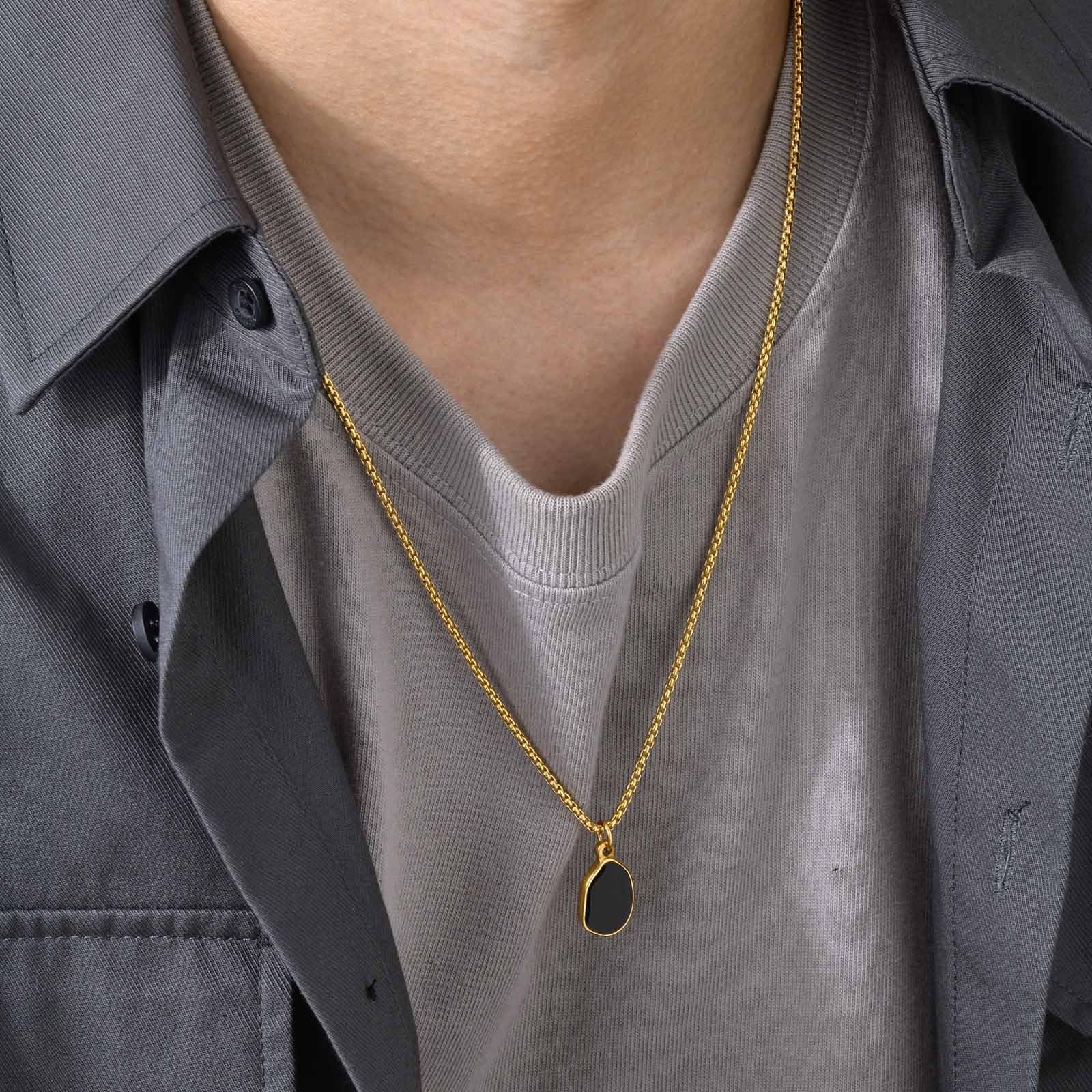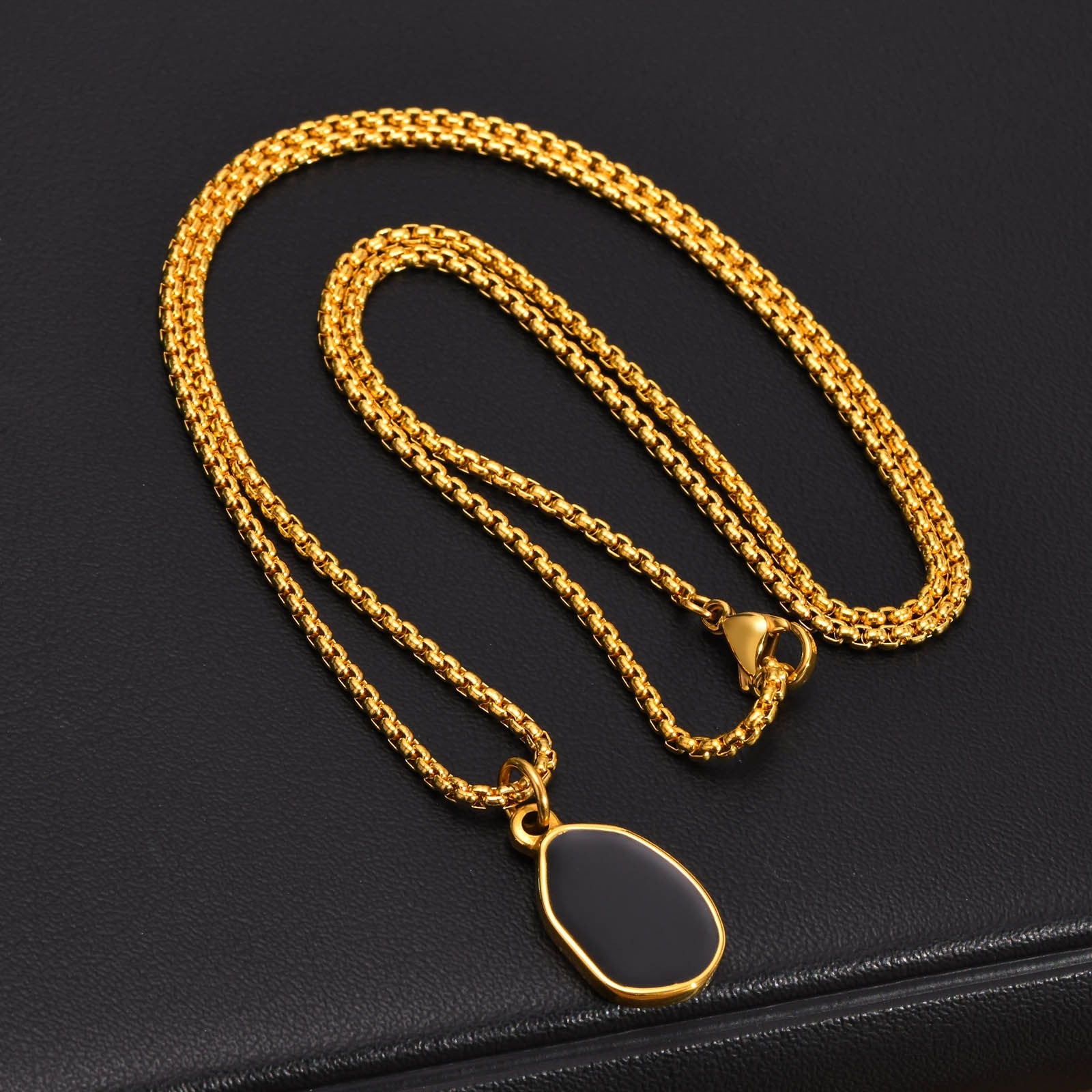 Wear modern calm with this stainless steel oval pendant necklace. Gold-plated edges and black enamel create quiet contrast, clean lines, and daily confidence.