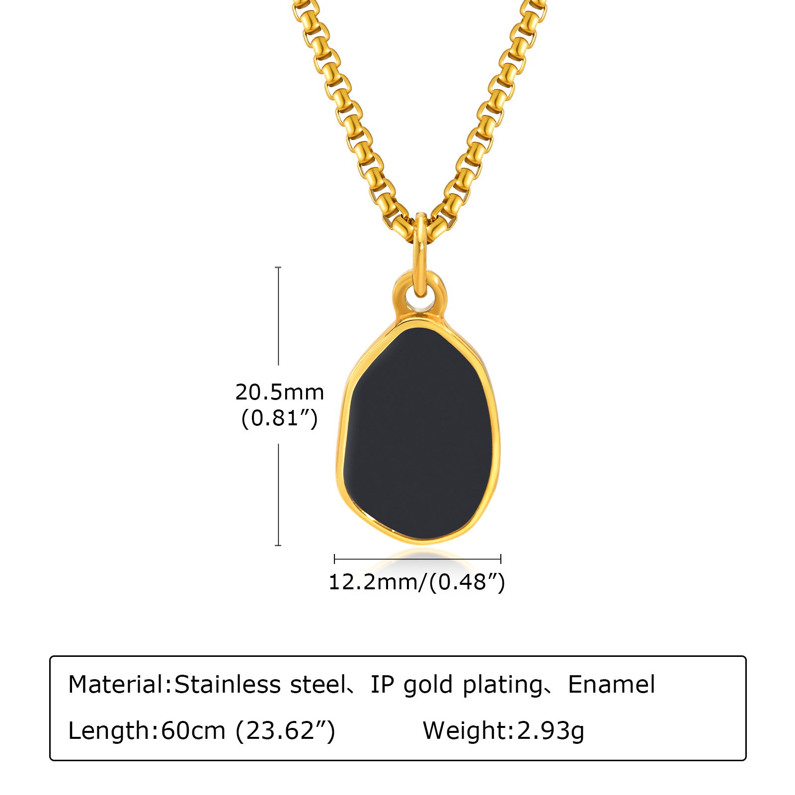 Pendant measures about 20.5 × 12.2 mm with a 60 cm chain for relaxed wear.