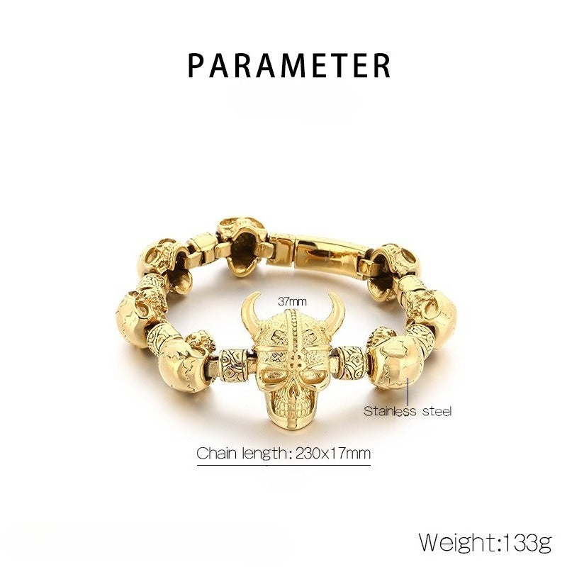 Kemstone Skull Bracelet for Men Titanium Steel Chunky Chain Heavy Punk Style Silver Gold KB209644-KJX