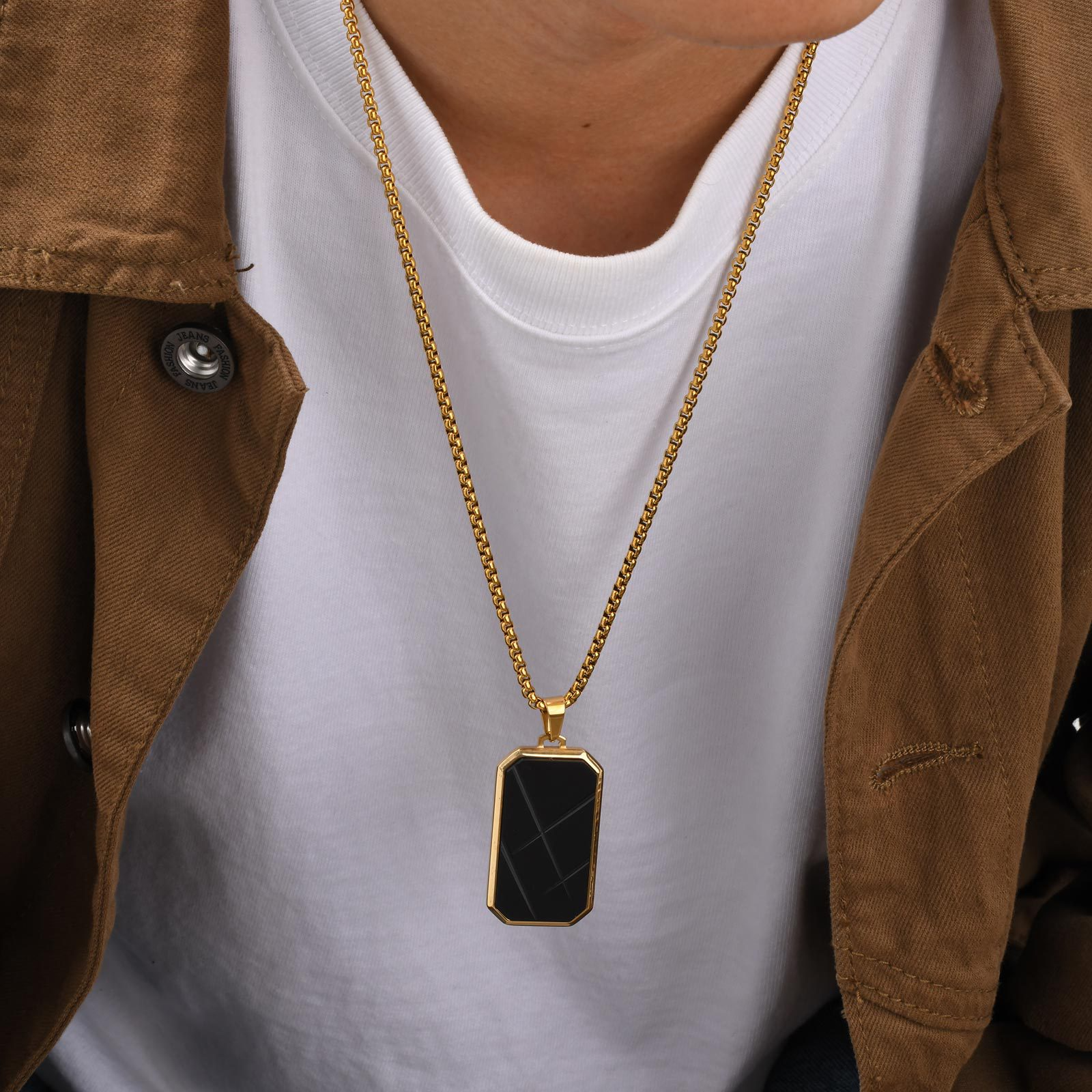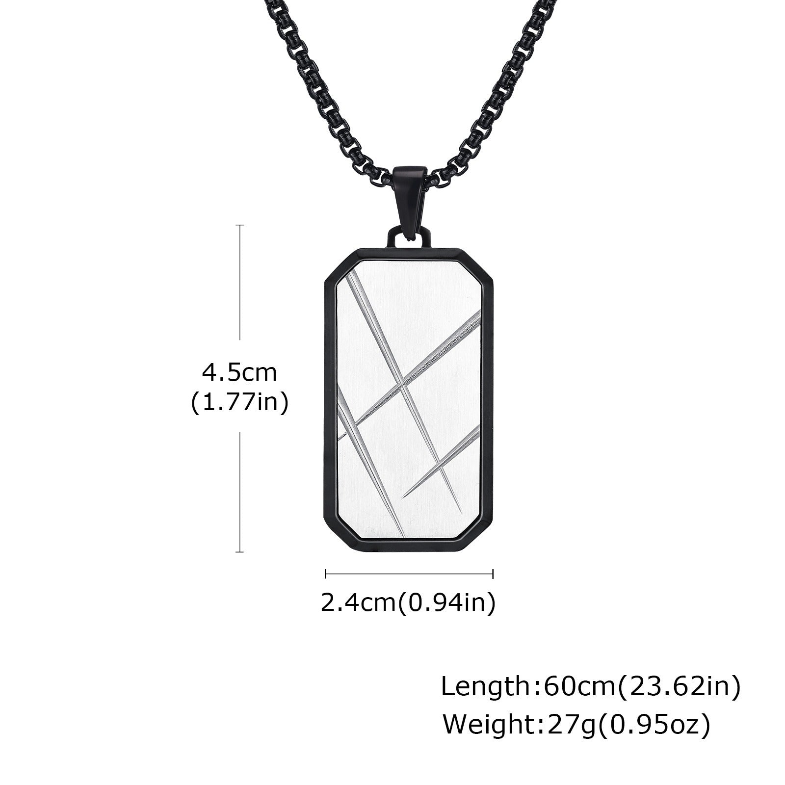 Pendant measures approx. 4.5 × 2.4 cm and sits flat on the chest. Paired with a 60 cm chain, it stays balanced with minimal movement.