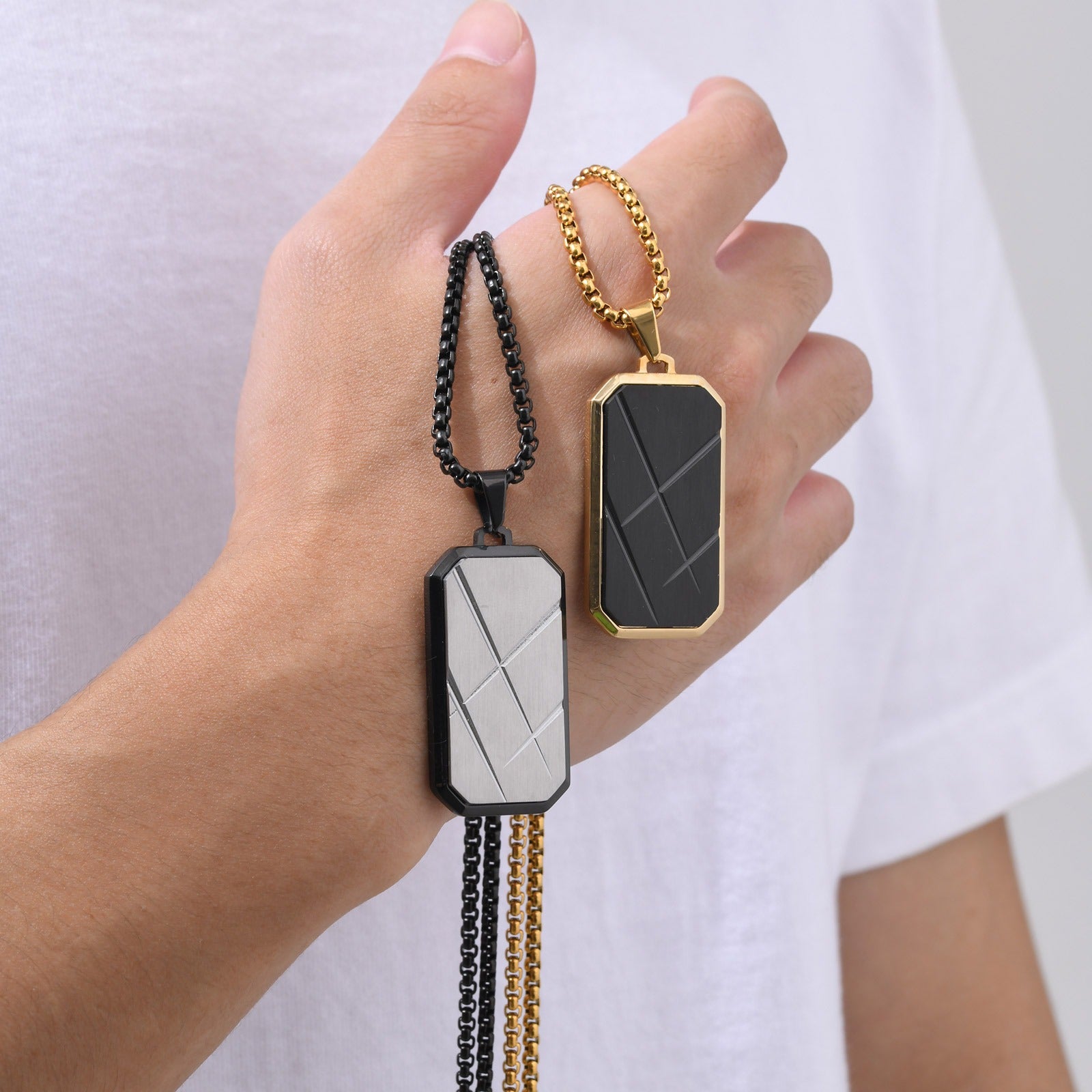 Modern and minimalist in character, this pendant integrates naturally into streetwear, monochrome outfits, or clean daily looks.