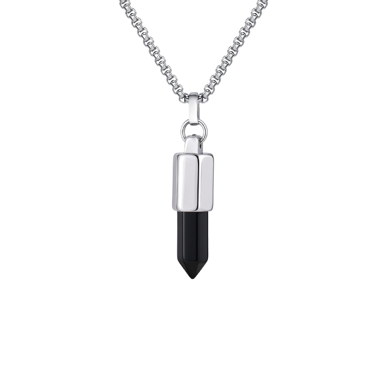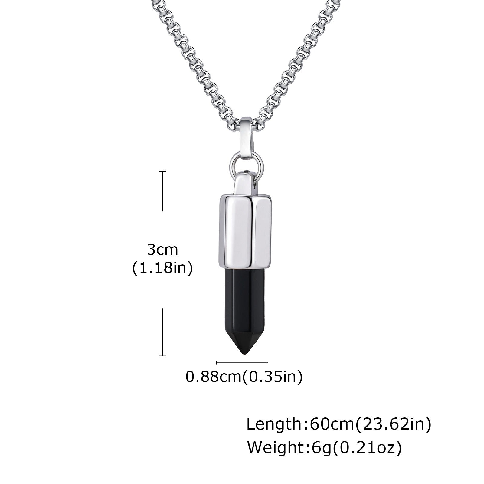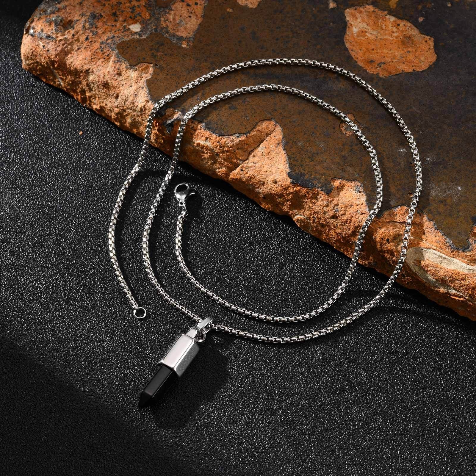 Kemstone Men’s Stainless Steel Bullet Pendant Necklace – Tiger Eye & Black Agate Minimalist Jewelry PN-2227