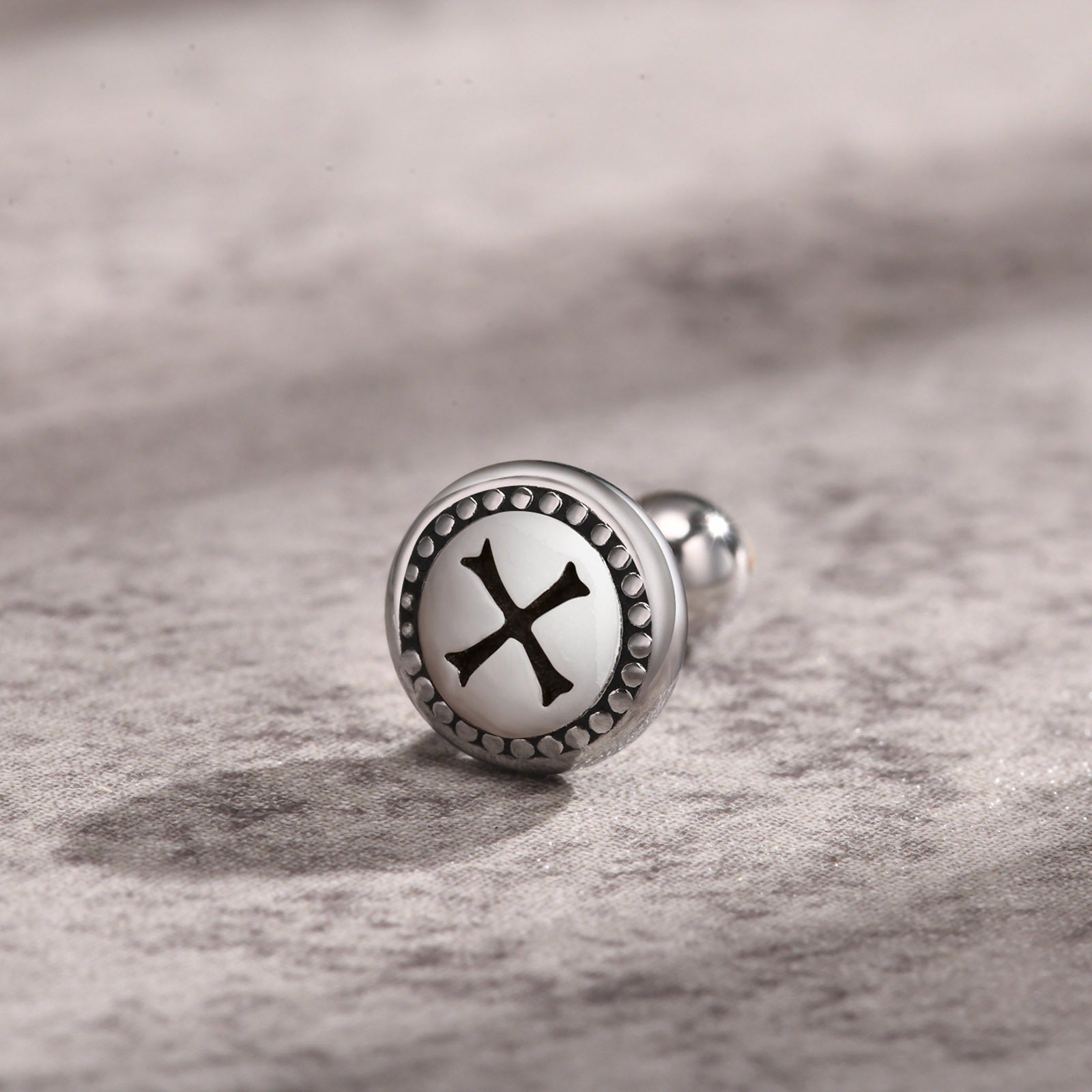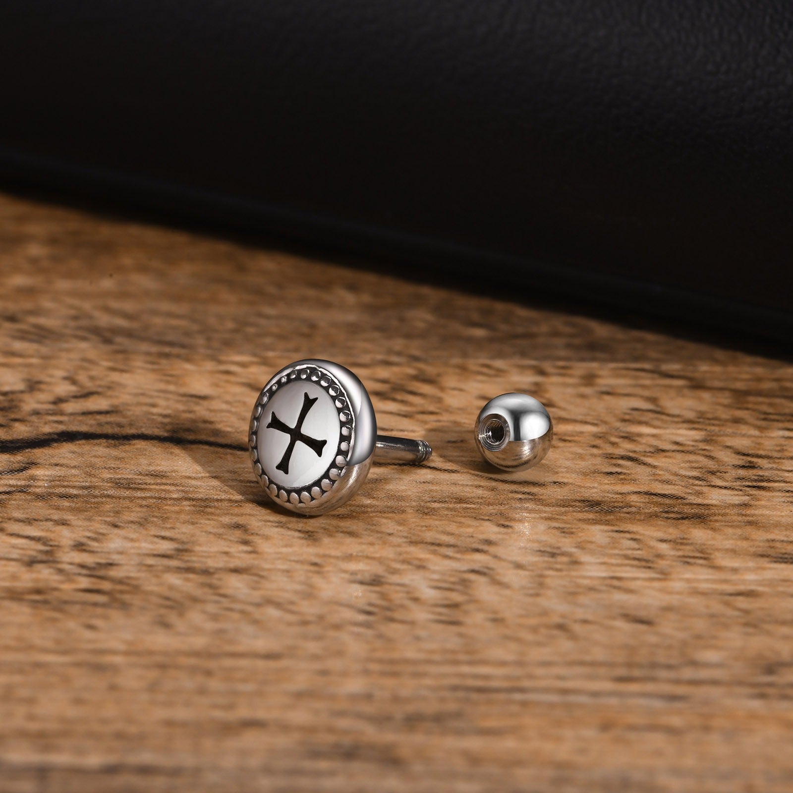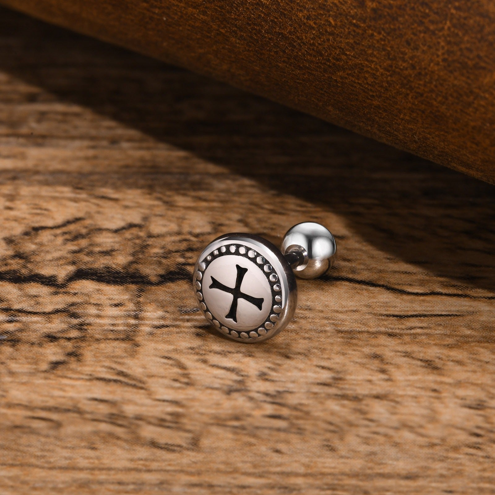 Stand out with vintage round studs engraved with a raised cross — symbolizing faith, courage, and resilience.