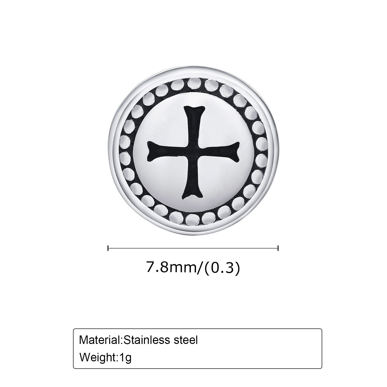 Kemstone Men’s Stainless Steel Cross Stud Earrings – Gothic Round Design Jewelry ES-429