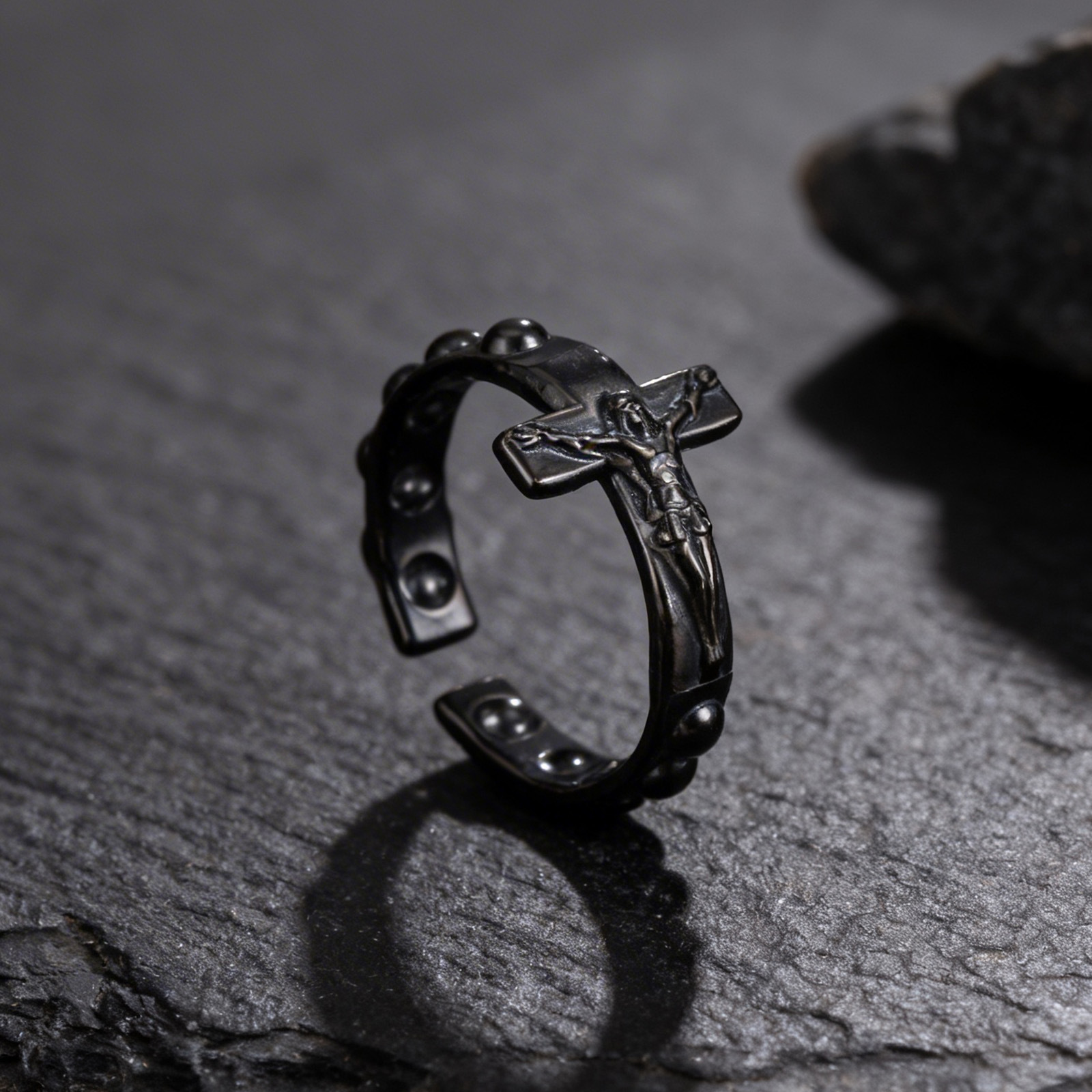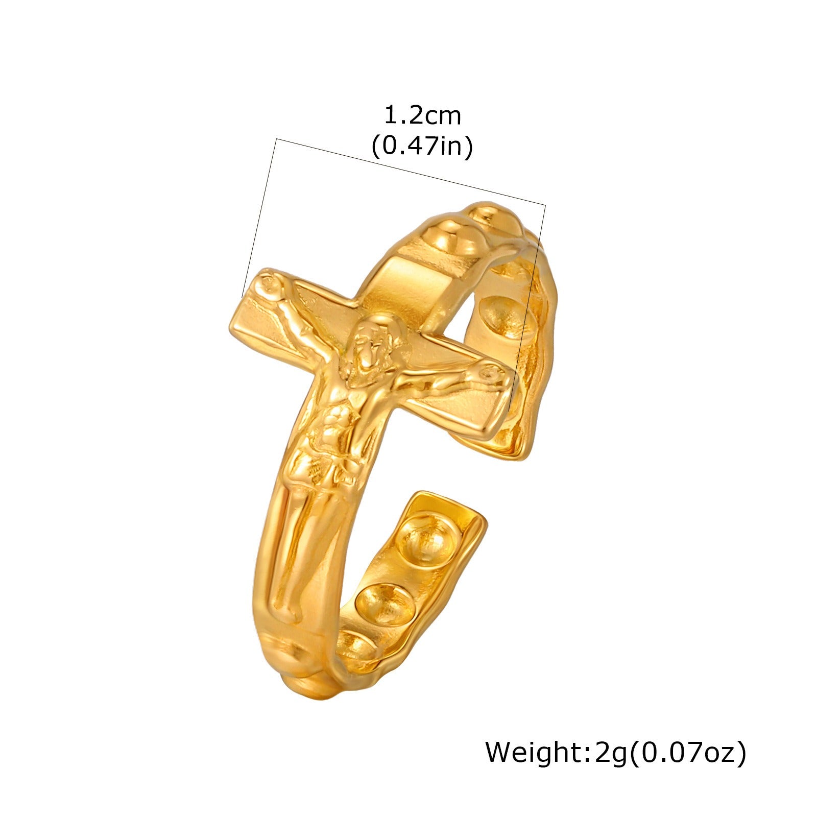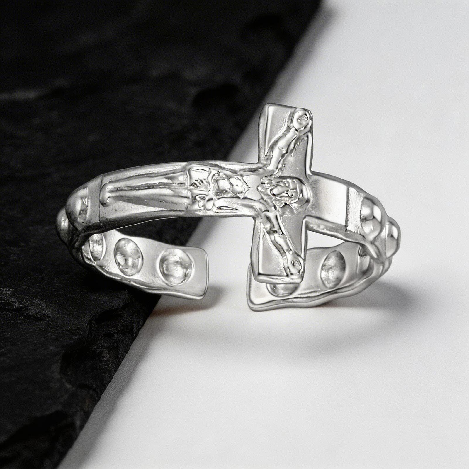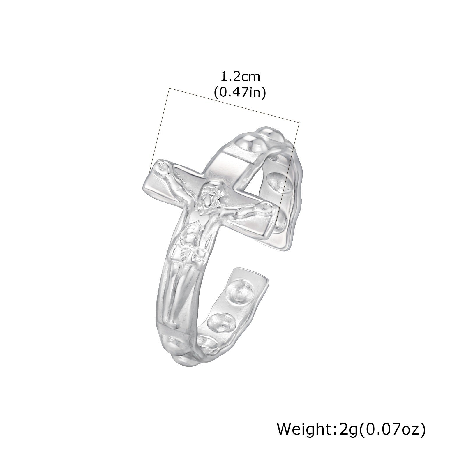 Wear this stainless steel cross ring and let the sculpted metal cross add a bold detail to your everyday look, while the adjustable open band keeps the fit comfortable for daily wear.